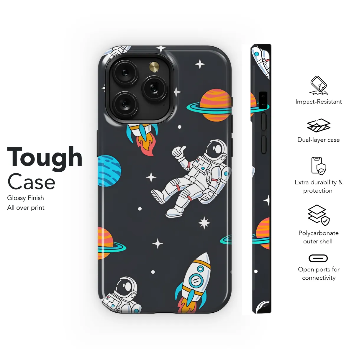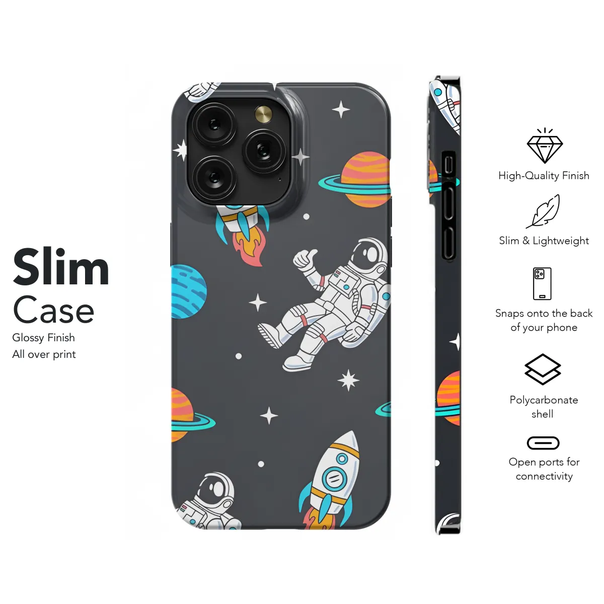 Protect your phone with this fun and stylish Space Cartoon phone case. The durable hard case design provides excellent protection from drops and scratches, while the vibrant cartoon graphics are sure to turn heads. The case is compatible with a range of iPhone, Samsung, and Pixel models, so you can find the perfect fit for your device.