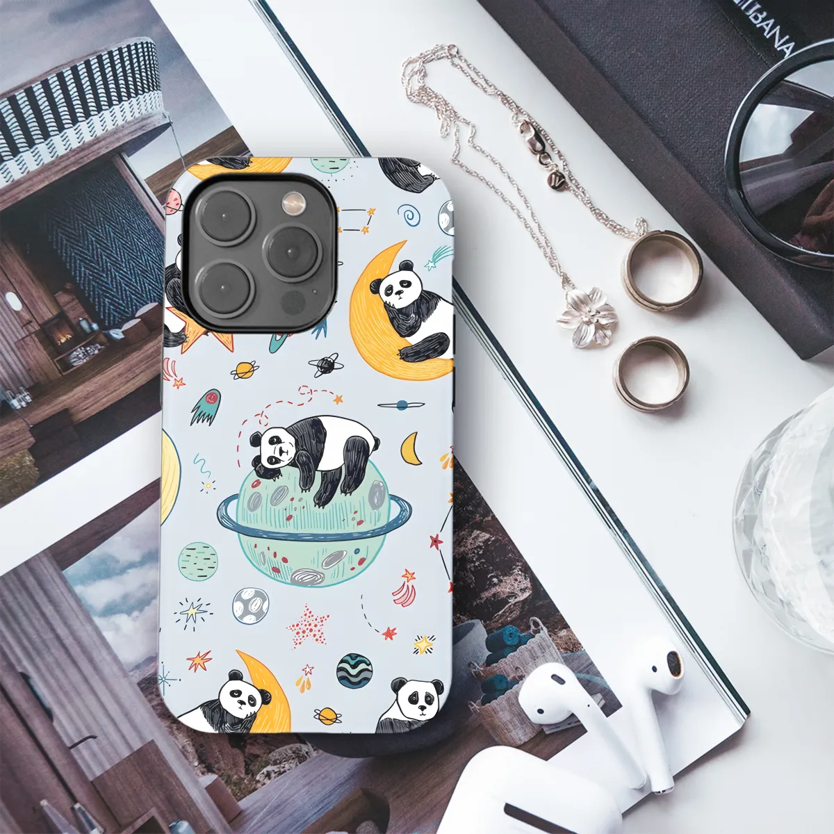 Escape into the cozy embrace of sleep with our Space Sleeping Panda Phone Case. Join our adorable panda as it snoozes amidst swirling nebulae and twinkling stars. Protect your phone in celestial style while dreaming of interstellar adventures.