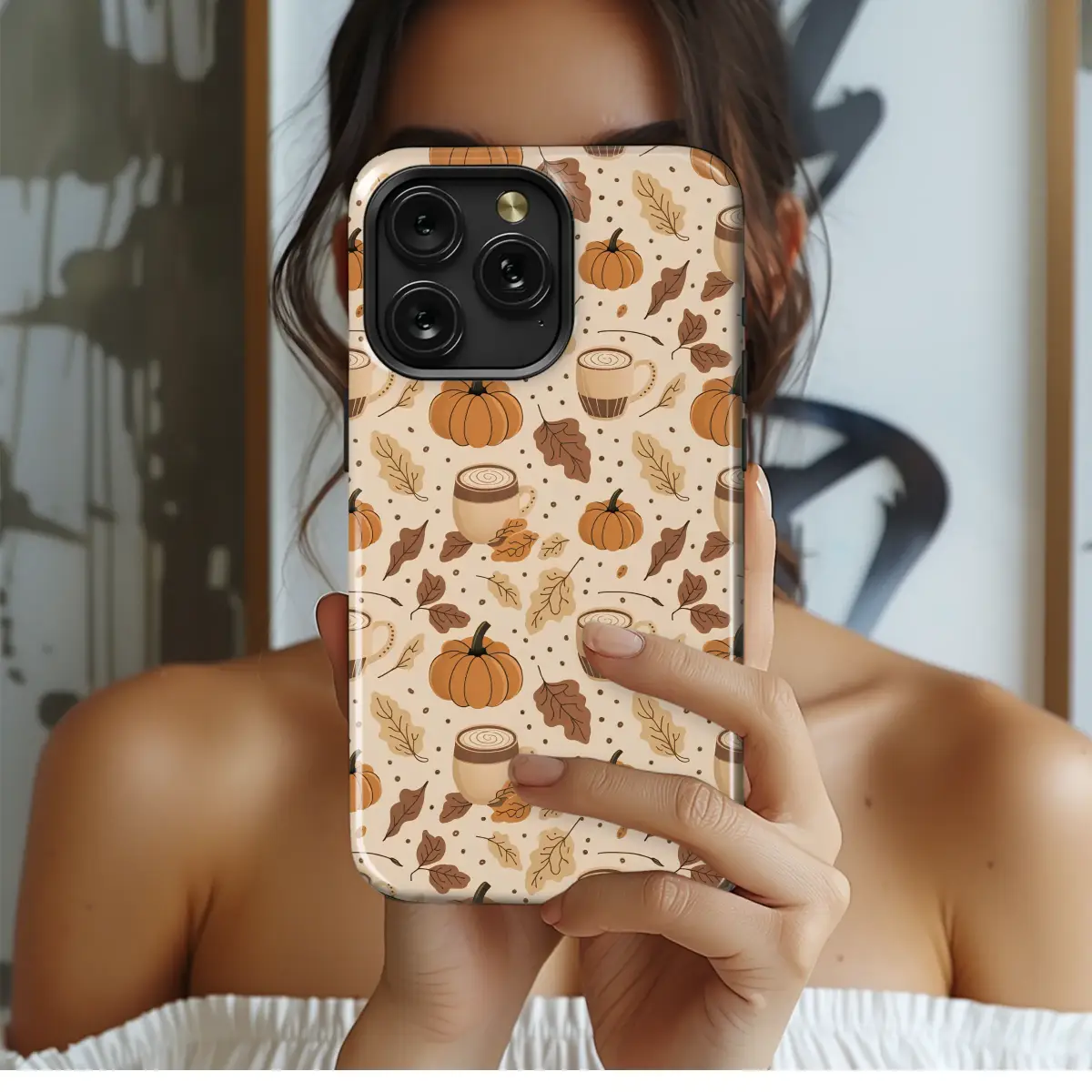 Wrap your everyday essentials in the comforting embrace of the coziest season. This delightful design captures the pure essence of autumn, inviting you to savor the simple joys of a crisp, golden afternoon. Imagine the warmth of your favorite oversized sweater and the scent of cinnamon and nutmeg in the air. This charming pattern features a delightful dance of plump orange pumpkins, swirling mugs of steamy spiced latte, and a cascade of falling leaves in rich shades of ochre, sienna, and deep brown. Each element is lovingly illustrated to evoke a sense of nostalgic comfort and whimsical charm, scattered across a warm, creamy backdrop like memories of a perfect fall day. It’s a celebration of harvest time, sweater weather, and the warm glow that fills the heart when the air turns cool. Let this beautiful artwork be your constant companion, a small, tangible piece of autumn's magic that you can carry with you through pumpkin patch adventures, cozy reading sessions, and fireside chats. It's not just a pattern; it's a feeling, a warm hug for your soul that whispers of all things wonderful about fall.