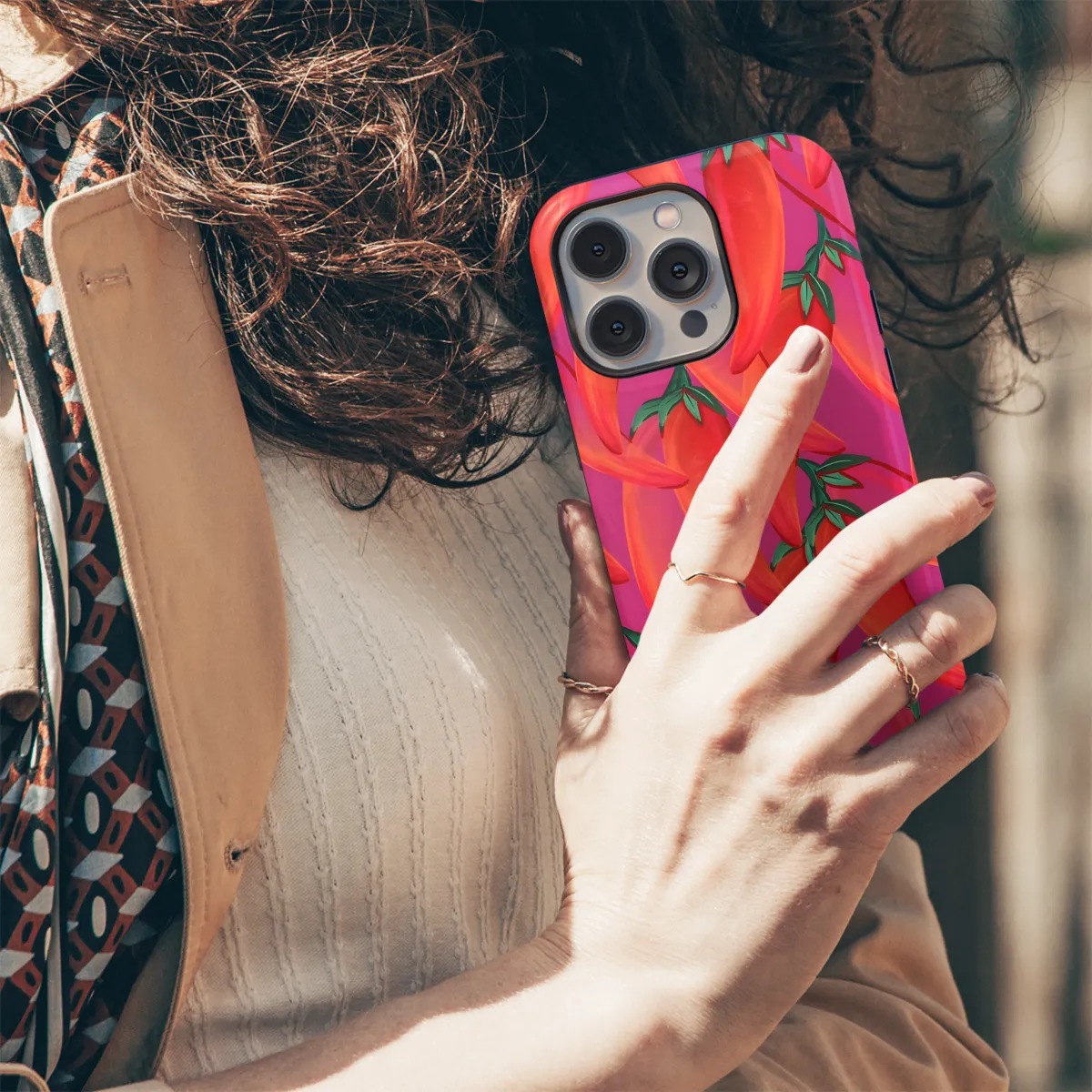 Get ready to spice up your phone with our vibrant Spicy Chili Pattern Phone Case! This eye-catching case is designed to protect your iPhone, Samsung, or Pixel phone while adding a dash of heat to your style. Its sleek and durable design features an alluring chili pepper pattern that's sure to turn heads. Plus, the precise cutouts ensure easy access to all ports and buttons, so you can stay connected and stylish wherever you go.
