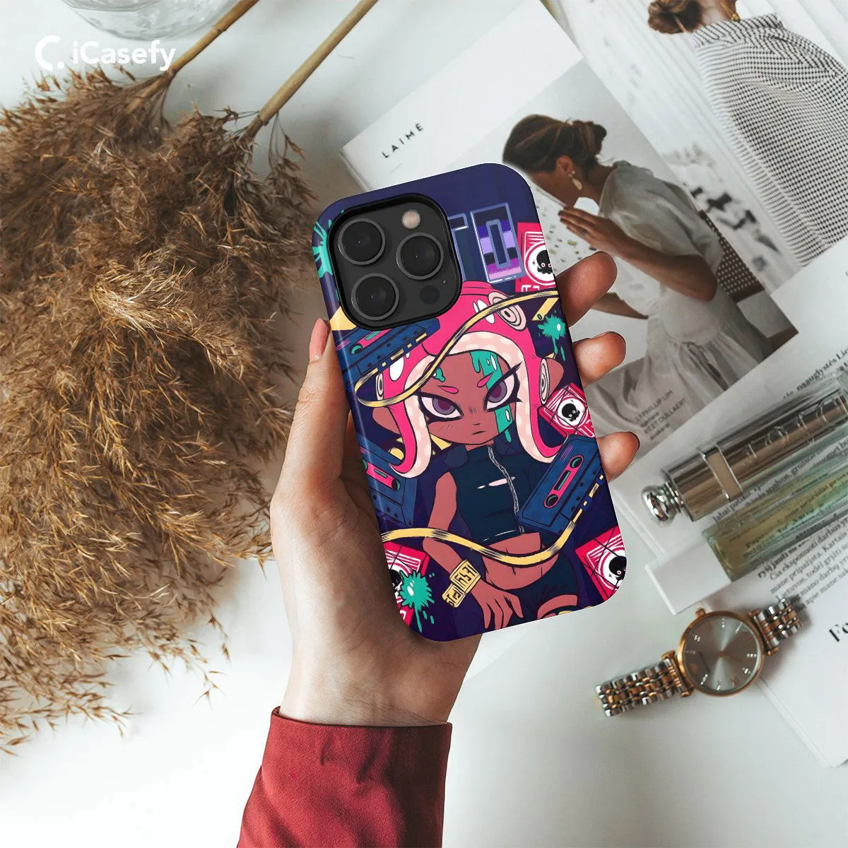 Immerse yourself in the colorful world of Splatoon with this vibrant phone case featuring iconic elements from the game. Adorned with splatters of ink, quirky characters, and dynamic scenes, this accessory captures the energetic spirit of Inkopolis. Carry the excitement of turf wars and squid adventures with you wherever you go, letting your device become a canvas for the imaginative and playful world of Splatoon with this eye-catching accessory.