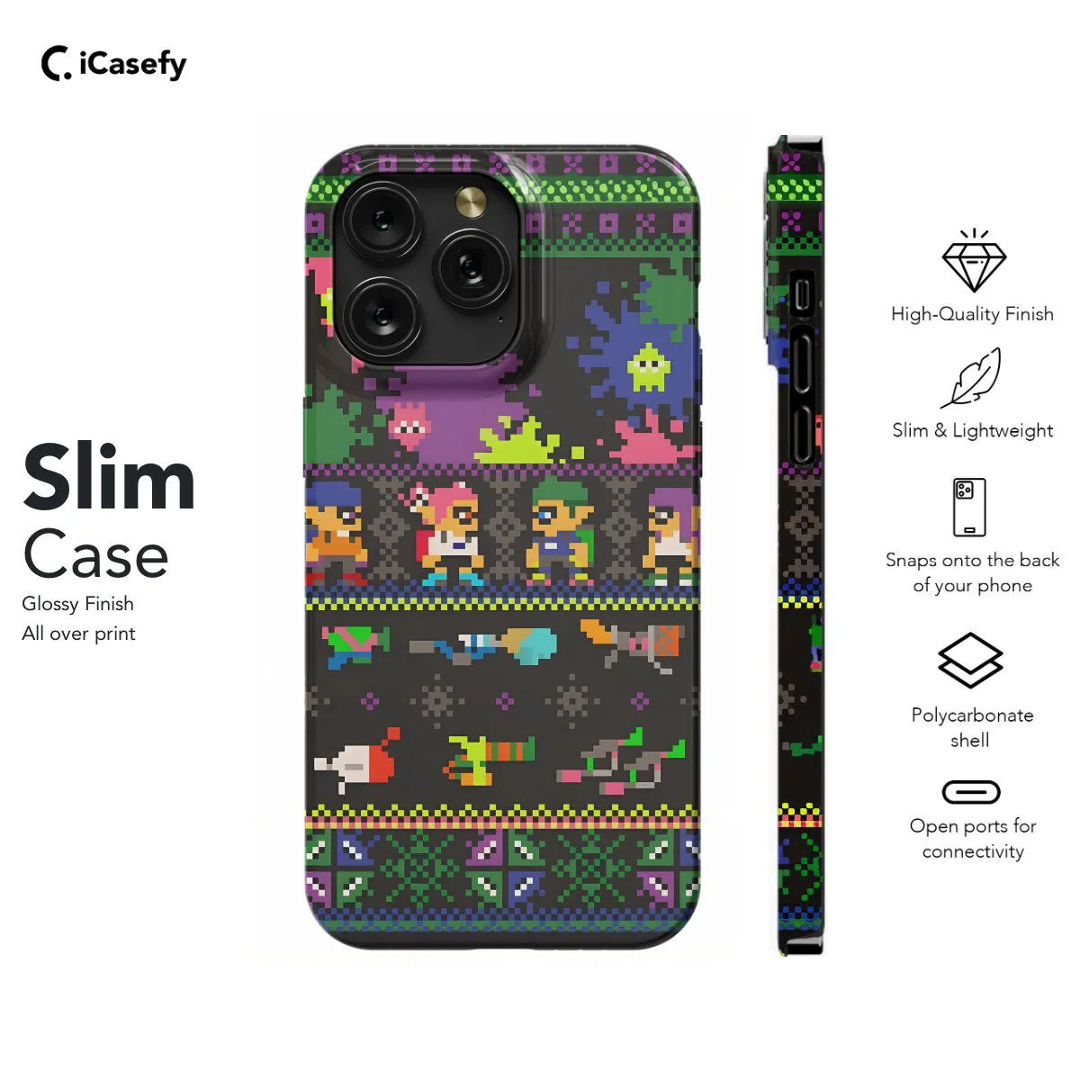 Introducing our Splatoon Game phone case, inspired by the colorful and dynamic world of the hit video game. Featuring vibrant ink-splat designs and iconic characters from the Splatoon series, this case adds a splash of excitement to your device. Show your love for Splatoon while protecting your phone in style.