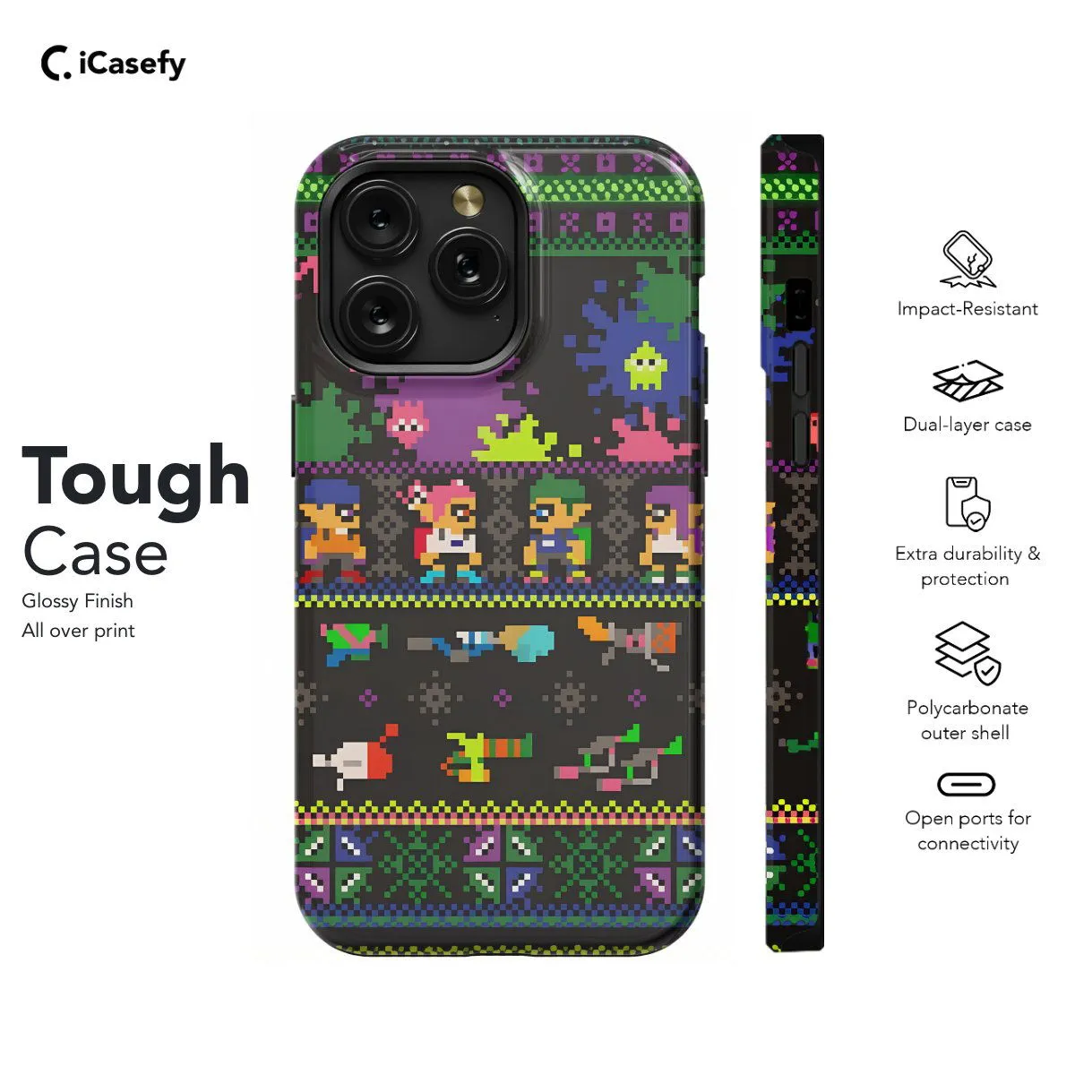 Introducing our Splatoon Game phone case, inspired by the colorful and dynamic world of the hit video game. Featuring vibrant ink-splat designs and iconic characters from the Splatoon series, this case adds a splash of excitement to your device. Show your love for Splatoon while protecting your phone in style.