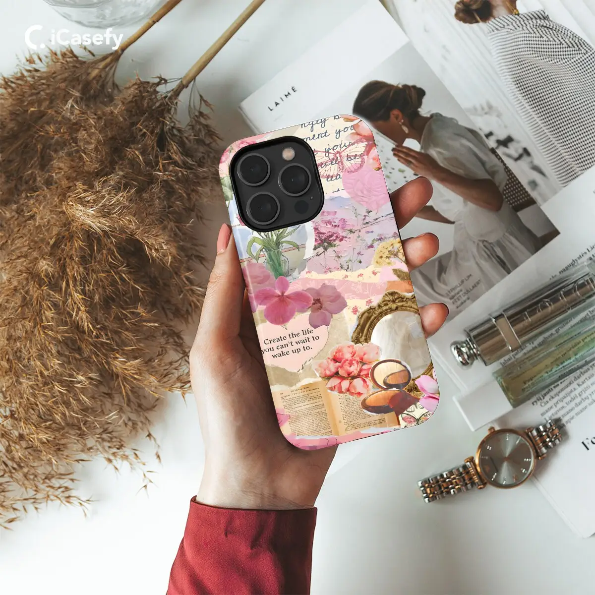 **Light Pink Spring Aesthetic Collage Phone Case**Embrace the vibrant hues of spring with this enchanting phone case featuring a captivating collage of delicate florals, sweet pastels, and airy textures. Its soft, light pink shade exudes serenity and warmth, while the intricate design adds a touch of whimsical charm to your everyday accessory.Crafted with precision, this case provides reliable protection for your iPhone, Samsung, or Pixel smartphone. Its durable construction safeguards your device from scratches, bumps, and everyday wear and tear.Immerse yourself in the vibrant world of spring with this captivating phone case, perfect for adding a touch of cheer to your daily routine.Clear Case: