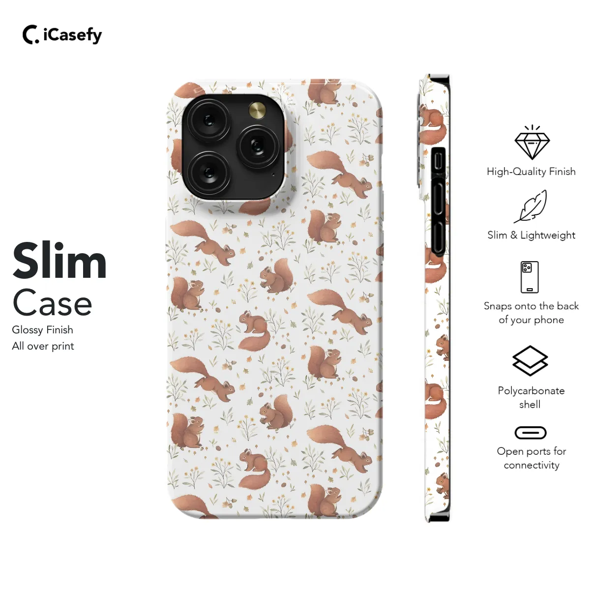 Protect your phone in style with our vibrant Squirrels pattern case! Featuring a playful pattern of adorable squirrels, this case adds a touch of whimsy to your device. Its durable construction offers excellent protection against scratches, bumps, and everyday wear and tear, while the slim profile ensures your phone stays pocket-friendly. Compatible with a wide range of iPhone, Samsung, Pixel, and other smartphone models.