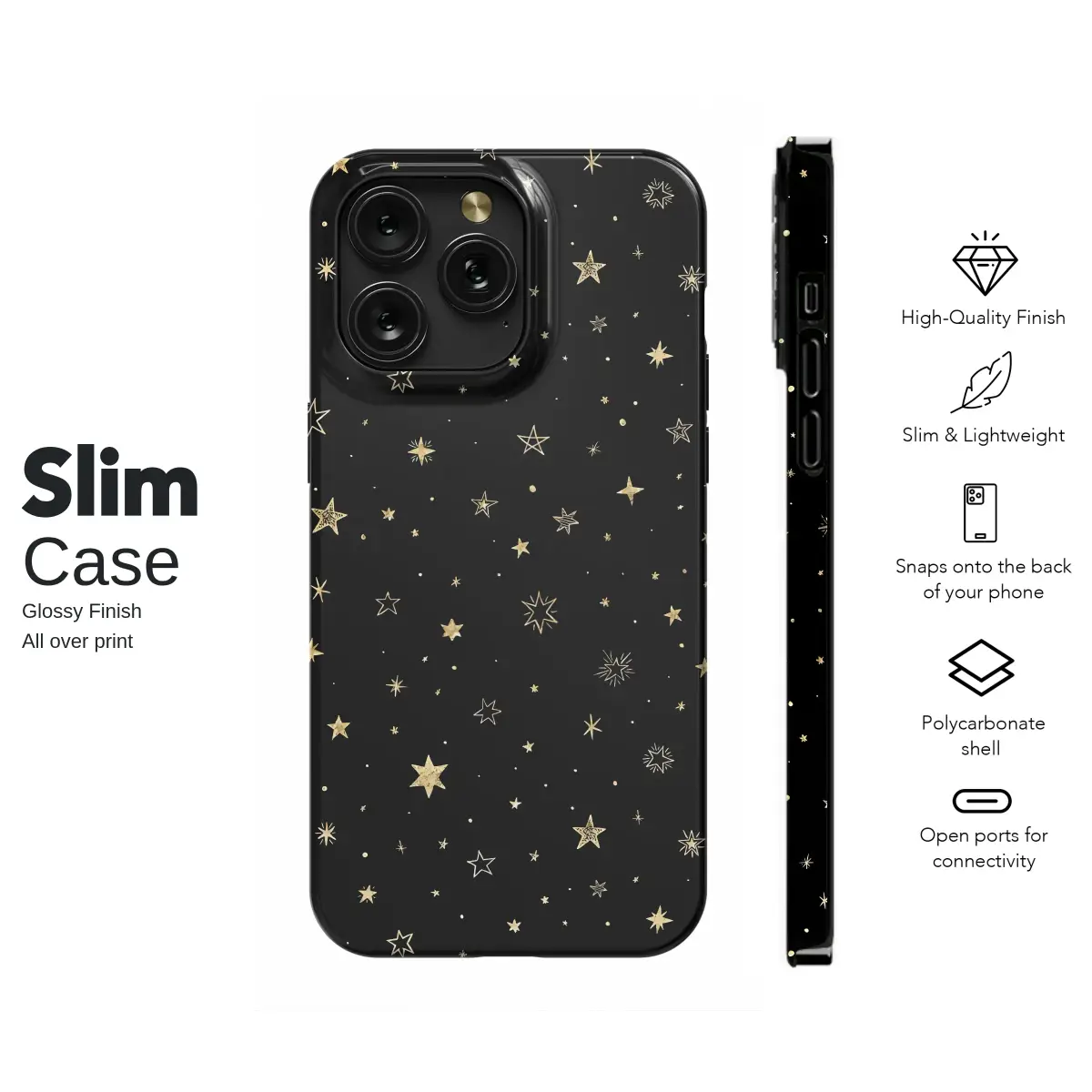 Capture the enchanting magic of a clear midnight sky and hold it right in the palm of your hand with this celestial aesthetic design. A stunning galaxy of hand-drawn gold stars cascades across a deep, velvety black canvas, creating a mesmerizing cosmic scene. Each star tells its own story—some are filled with a brilliant gold glitter texture that shimmers and catches the light with every movement, while others are delicately sketched in whimsical, artistic outlines. This starry night pattern is perfect for the dreamer, the stargazer, or anyone who finds wonder in the cosmos. It blends a sophisticated, elegant feel with a touch of boho and witchy charm, making it a truly unique accessory. Adorn your most essential daily companion with this beautiful constellation art, transforming a simple tool into a personal statement and a piece of wearable art. It’s more than just a pretty pattern; it’s a pocketful of starlight, a thoughtful gift for her, and a constant reminder to look up and make a wish. Let this mystical design wrap your connection to the world in the quiet beauty of the universe.