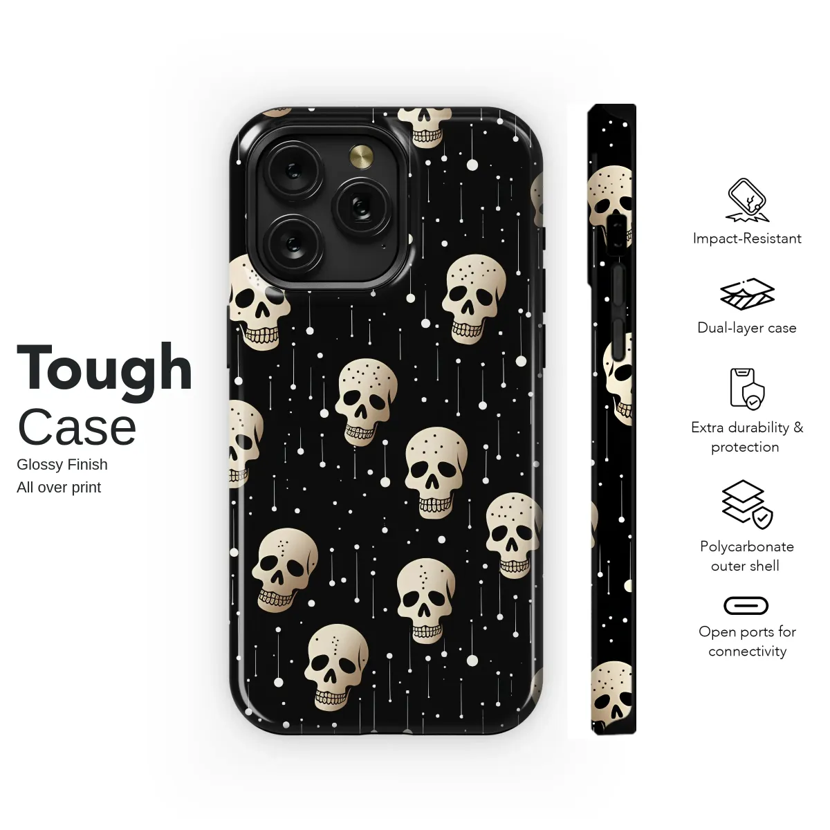 Embrace the beauty of the beyond with this mesmerizing design, where the macabre meets the celestial in a stunning cosmic dance. Against a canvas of infinite, velvety black, a cascade of stylized cream-colored skulls floats weightlessly, each one a tiny universe of its own. Delicate trails of stardust and tiny, glowing orbs descend around them, like a gentle meteor shower in a forgotten galaxy, creating a captivating sense of motion and wonder. This artwork captures a unique blend of gothic elegance and whimsical spookiness, making it a powerful statement piece for anyone drawn to the mysterious and the beautiful. The stark contrast and clean lines give it a modern, edgy feel, while the repeating pattern creates a hypnotic, otherworldly rhythm that pulls you in. It’s more than just a pattern; it’s a narrative that whispers tales of starlit nights, ancient secrets, and the magic that lies in the darkness. This design is an ideal expression of personal style for the modern mystic, the everyday goth, or the lover of dark academia and all things alternative. Perfect for adding a touch of sophisticated rebellion and cosmic intrigue to your daily essentials, it’s a conversation starter and a testament to the idea that even in the shadows, there is a universe of light and beauty waiting to be discovered.