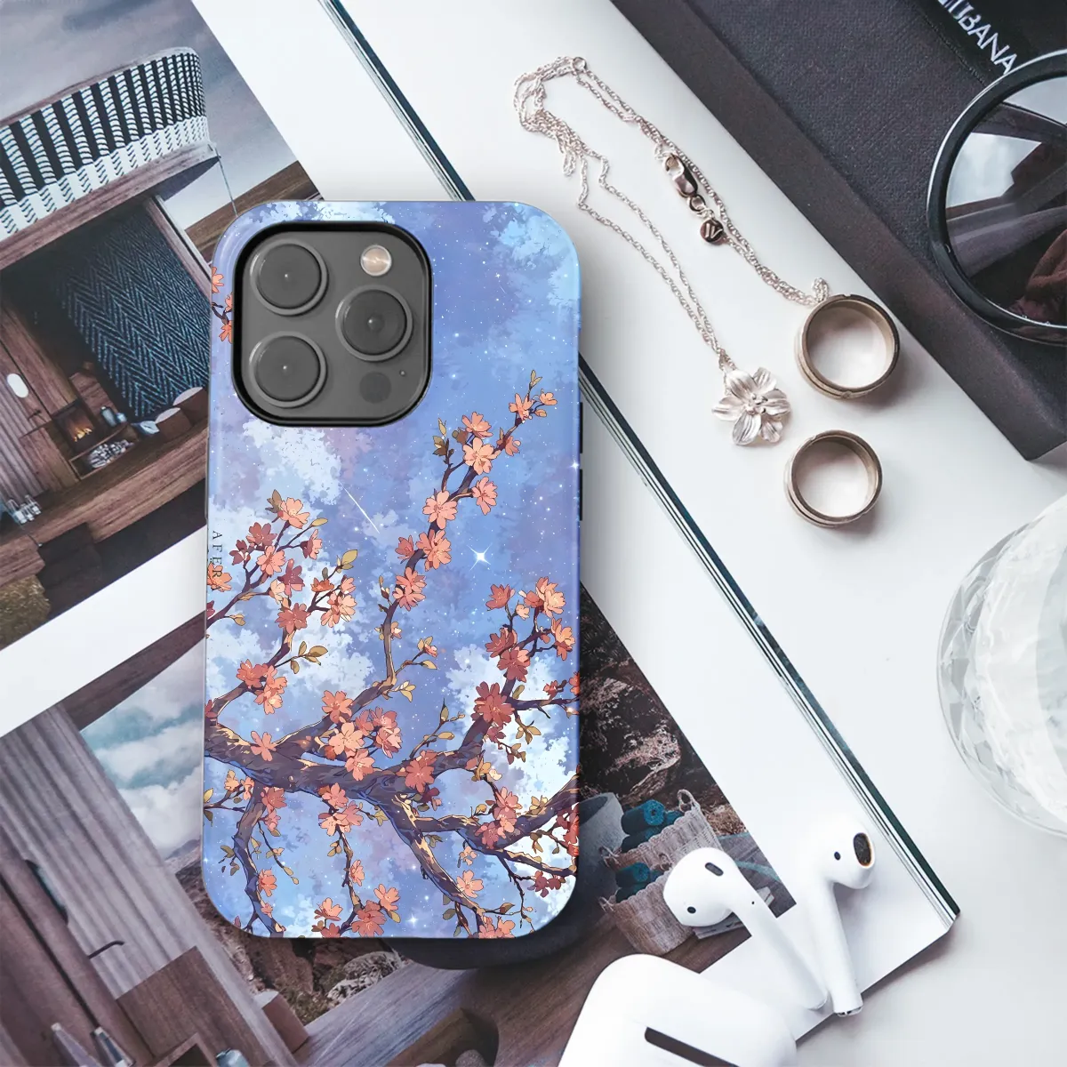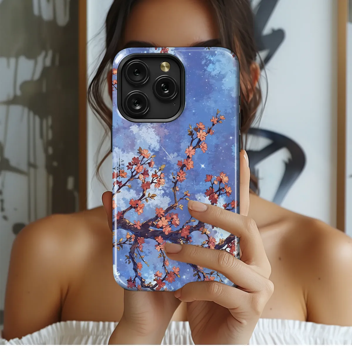 Adorn your device with this breathtaking design featuring delicate cherry blossoms against a vibrant, starry night sky. The enchanting illustration captures the serene beauty of nature, a captivating blend of soft pink petals and a celestial backdrop filled with twinkling stars and wispy clouds. This artistic print adds a touch of whimsy and elegance, transforming your everyday accessory into a unique statement piece. Perfect for those who appreciate artistic expression and seek a subtle yet stunning visual appeal. Its high-resolution printing ensures vibrant colors and crisp details that will last. This dreamy design is sure to bring a peaceful atmosphere wherever you go. The captivating artwork features a detailed portrayal of blooming branches, creating a mesmerizing visual experience. Transform your personal item into a work of art with this beautiful and unique design, suitable for those who love nature, art, and unique styles. This stunning piece is a perfect gift for yourself or someone special, a stylish and expressive way to personalize your belongings. Express your individual style with this captivating, high-quality print showcasing the serene beauty of nature.
