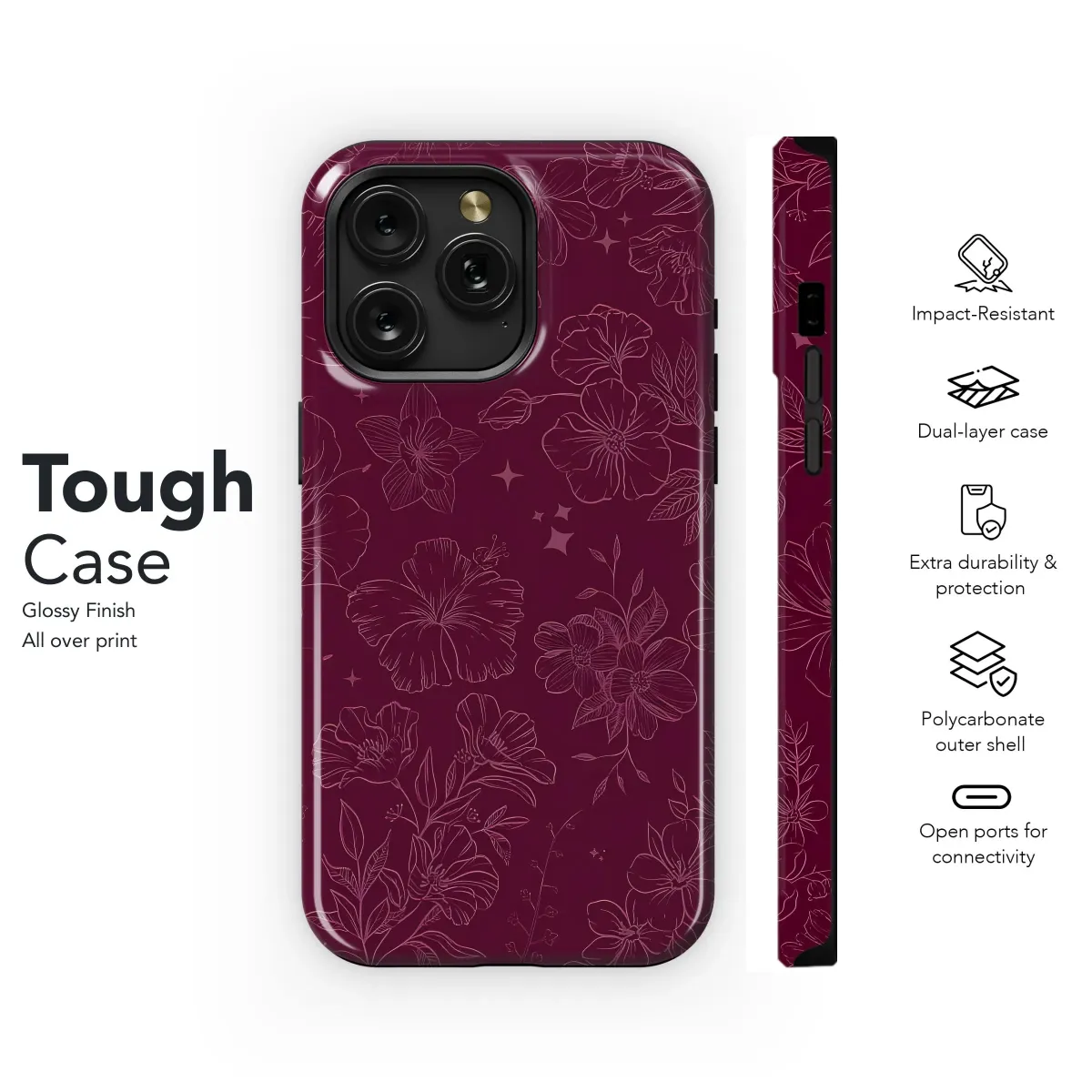 Wrap your tech in the mysterious allure of this exquisite dark botanical design. Featuring a captivating pattern of elegant hand-drawn floral outlines set against a rich, deep wine-red backdrop, this print evokes the enchanting beauty of a secret garden at twilight. Delicate lines trace the contours of various blossoms, from bold hibiscus blooms to intricate smaller flowers and winding vines, interspersed with subtle, shimmering star-like accents that add a touch of magic. The moody burgundy and lighter rose-pink color palette creates a sophisticated and dramatic aesthetic, perfect for those who appreciate gothic romance, dark academia vibes, or simply the timeless charm of nature-inspired art with an edgy twist. This unique botanical print is designed to transform your everyday essentials into stylish statements, adding a touch of personality and artistic flair to your portable companions. It’s an ideal choice for anyone seeking an aesthetic upgrade that combines natural elements with a darkly elegant sensibility. Embrace the beauty of this enchanting pattern, a true conversation starter that reflects a love for intricate detail and captivating design. This versatile design offers a perfect way to showcase your unique style and appreciation for botanical artwork, providing a visually stunning exterior for your essential electronics. The seamless repeat of this captivating floral arrangement ensures a consistent and beautiful look across your chosen surface, making it a perfect fit for anyone desiring a chic and eye-catching accessory with a hint of dark fantasy. Let this beautiful pattern protect and personalize your device with its undeniable charm.