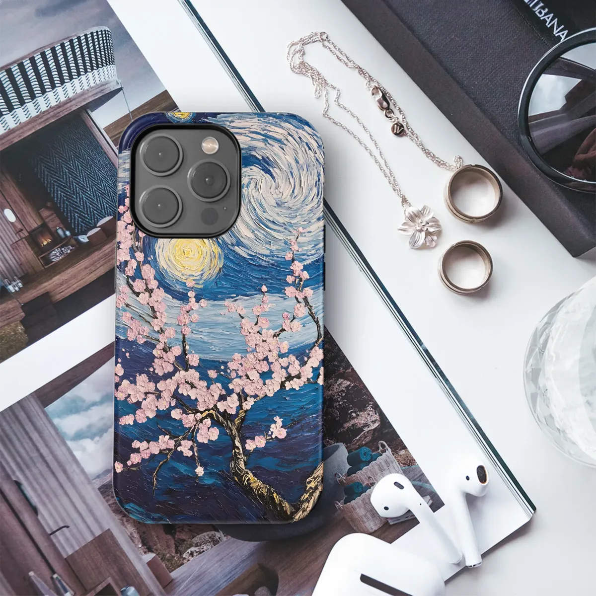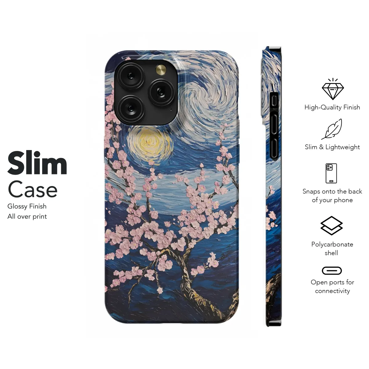 Elevate your style with this captivating art print, inspired by Van Gogh's iconic brushstrokes and the delicate beauty of cherry blossoms. The rich, textured design features swirling blues and vibrant pinks, creating a mesmerizing nocturnal scene. This isn't just a protective layer; it's a statement piece. Each detail is meticulously rendered, bringing the blooming branches to life under a starry sky, transforming your device into a miniature gallery. Perfect for adding a touch of artistic flair to your everyday life, this artwork offers a unique blend of classic and modern aesthetics. The high-quality print ensures vibrant colors and lasting durability. It's a thoughtful gift for art lovers, nature enthusiasts, or anyone who appreciates exceptional design. This unique design will make your device stand out from the crowd, adding a pop of personality and artistic expression to your personal style. Transform your accessory into an eye-catching masterpiece. Order yours today and experience the beauty of art in the palm of your hand. Perfect for gifting or personal enjoyment, this design is a must-have for art aficionados and anyone who appreciates high-quality, eye-catching art.