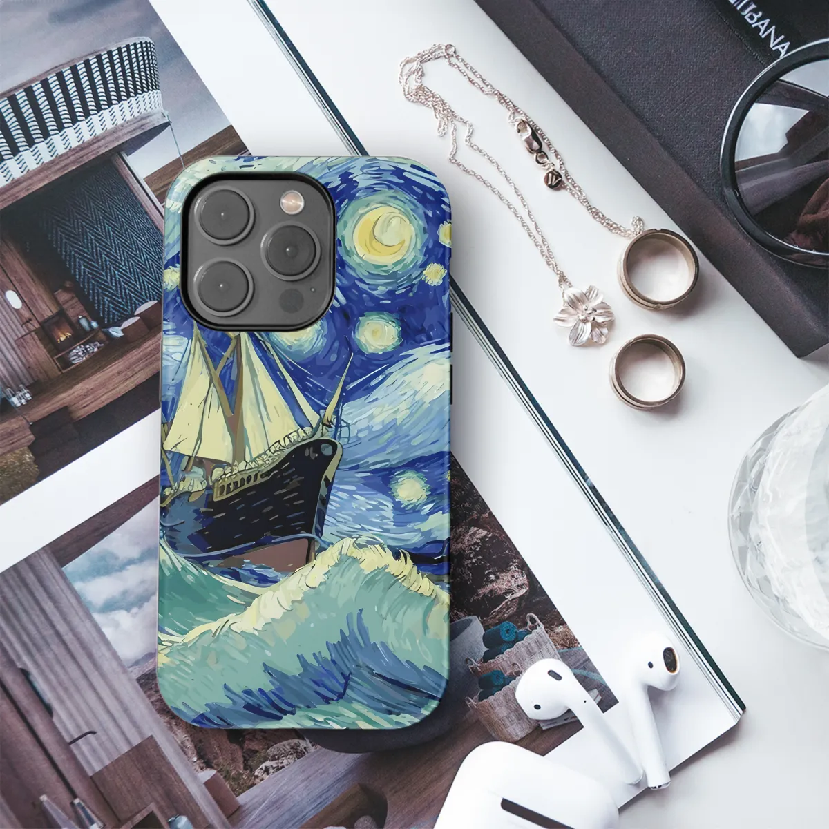 Journey into the celestial realm with our captivating Starry Night Ship Storm Phone Case. Inspired by Vincent van Gogh's iconic masterpiece, this ethereal design transports you to a swirling vortex of stars, waves, and a majestic ship navigating the stormy seas. Protect your iPhone, Samsung, or Pixel device in style with this durable and stylish case. Its slim profile provides a sleek and comfortable grip, while the vibrant colors and intricate details will turn your phone into a work of art. Embrace the nocturnal beauty and let the Starry Night Ship Storm Phone Case be your constant companion on cosmic adventures.