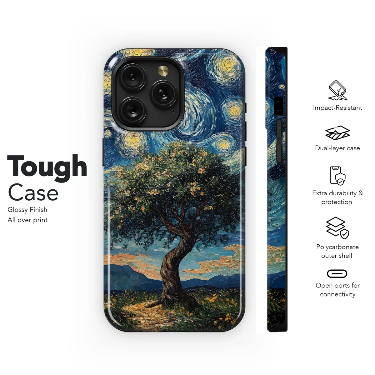 Embrace the beauty of Van Gogh's iconic style with this captivating design. A majestic, flowering tree stands proudly against a swirling, star-studded night sky, reminiscent of the artist's most famous works. The rich impasto texture and vibrant colors create a mesmerizing effect, transforming your device into a miniature masterpiece. This unique artwork features a tranquil landscape, complete with soft hills and a path leading to the enigmatic tree, inviting you on a visual journey. Perfect for individuals who appreciate artistic expression and want to carry a piece of art wherever they go. This high-quality print ensures vibrant, long-lasting colors that won't fade, offering a sophisticated and artistic touch to your personal style. Elevate your everyday aesthetic with this extraordinary design – a guaranteed conversation starter that reflects your refined taste. Show off your love for art and individuality with this stunning accessory. The detailed brushstrokes and evocative colors create a truly unique and artistic statement. Showcase your appreciation for classic art in a modern and stylish way, making this a perfect gift or a treat for yourself. Add a touch of artistic flair to your life today.