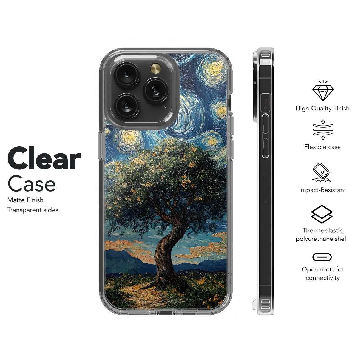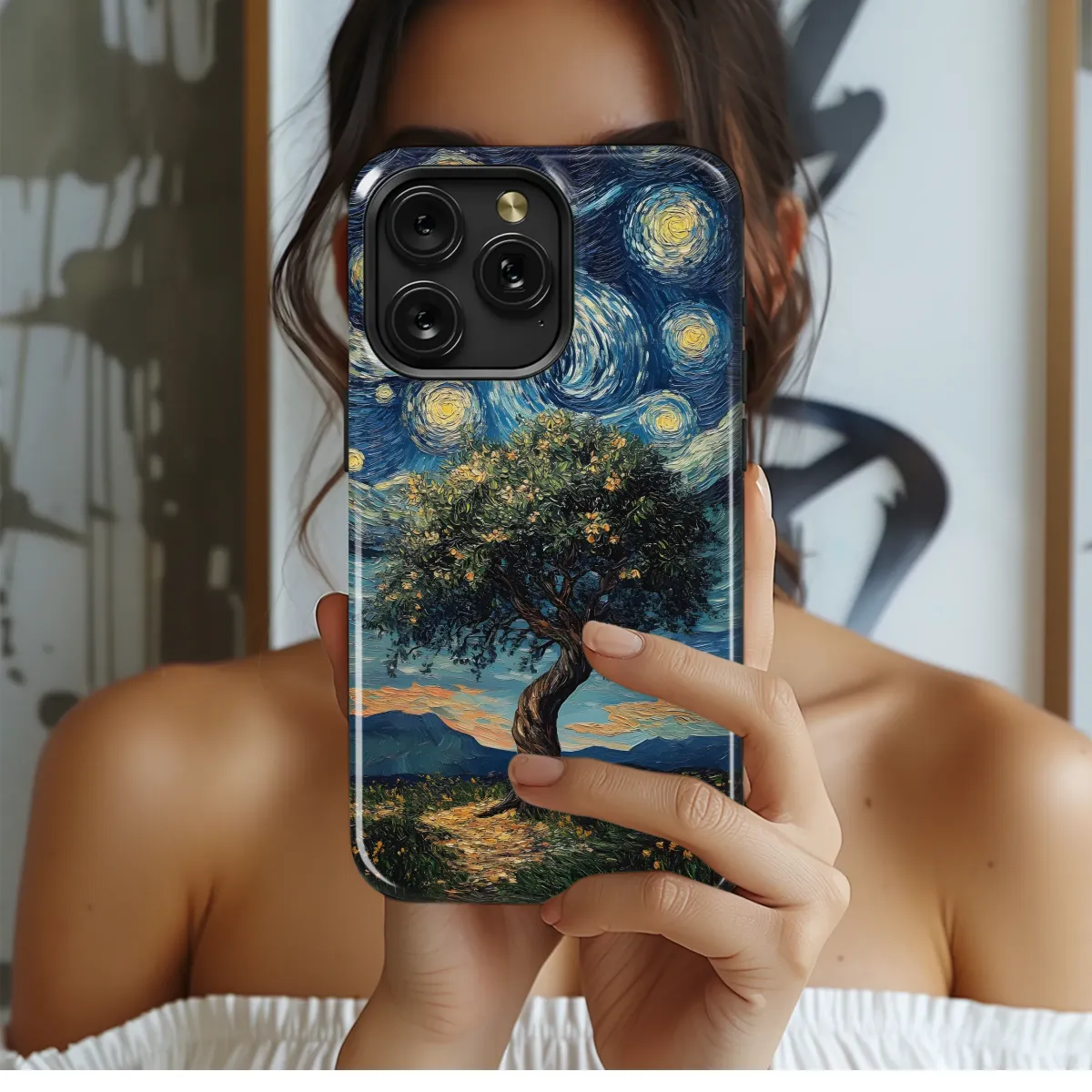 Embrace the beauty of Van Gogh's iconic style with this captivating design. A majestic, flowering tree stands proudly against a swirling, star-studded night sky, reminiscent of the artist's most famous works. The rich impasto texture and vibrant colors create a mesmerizing effect, transforming your device into a miniature masterpiece. This unique artwork features a tranquil landscape, complete with soft hills and a path leading to the enigmatic tree, inviting you on a visual journey. Perfect for individuals who appreciate artistic expression and want to carry a piece of art wherever they go. This high-quality print ensures vibrant, long-lasting colors that won't fade, offering a sophisticated and artistic touch to your personal style. Elevate your everyday aesthetic with this extraordinary design – a guaranteed conversation starter that reflects your refined taste. Show off your love for art and individuality with this stunning accessory. The detailed brushstrokes and evocative colors create a truly unique and artistic statement. Showcase your appreciation for classic art in a modern and stylish way, making this a perfect gift or a treat for yourself. Add a touch of artistic flair to your life today.