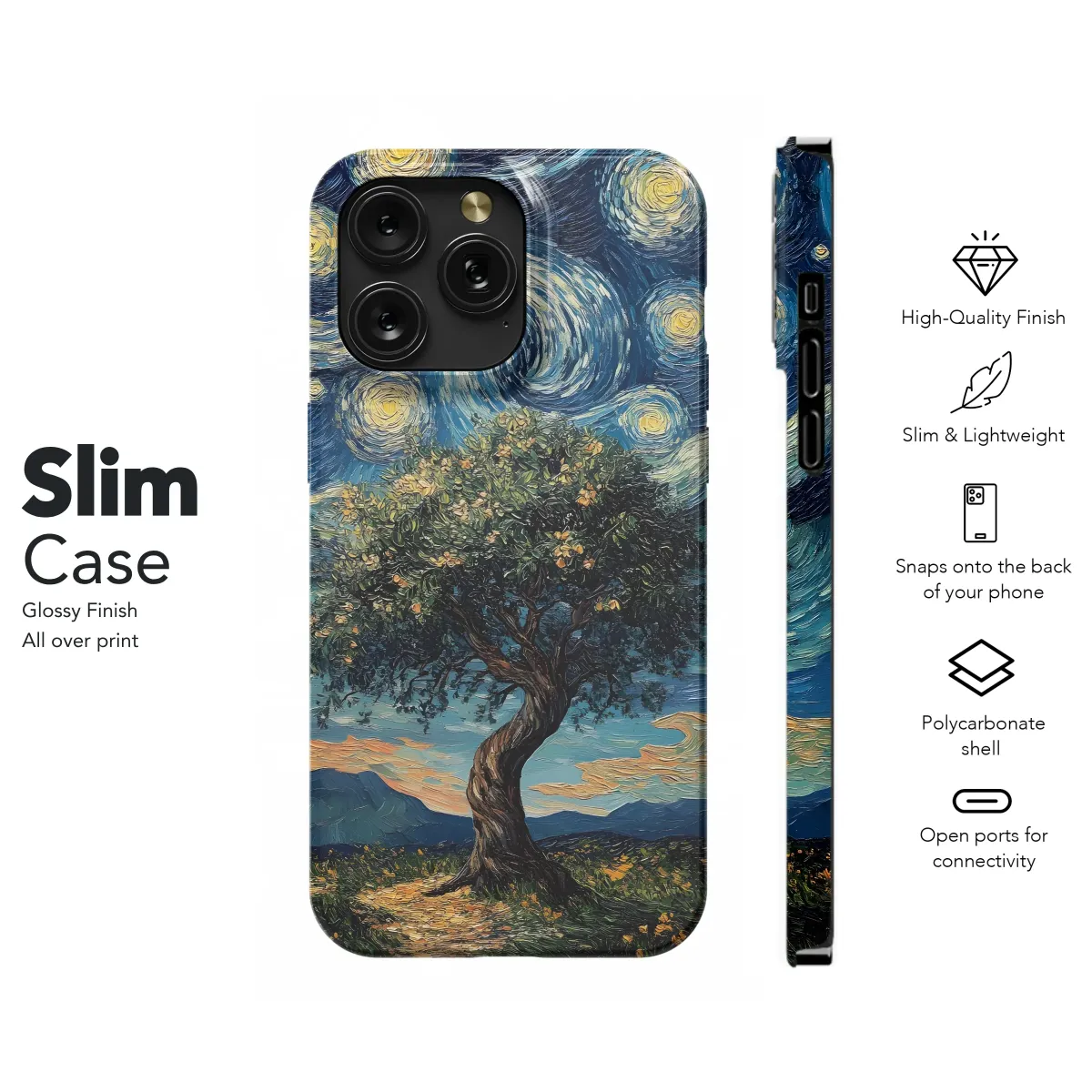 Embrace the beauty of Van Gogh's iconic style with this captivating design. A majestic, flowering tree stands proudly against a swirling, star-studded night sky, reminiscent of the artist's most famous works. The rich impasto texture and vibrant colors create a mesmerizing effect, transforming your device into a miniature masterpiece. This unique artwork features a tranquil landscape, complete with soft hills and a path leading to the enigmatic tree, inviting you on a visual journey. Perfect for individuals who appreciate artistic expression and want to carry a piece of art wherever they go. This high-quality print ensures vibrant, long-lasting colors that won't fade, offering a sophisticated and artistic touch to your personal style. Elevate your everyday aesthetic with this extraordinary design – a guaranteed conversation starter that reflects your refined taste. Show off your love for art and individuality with this stunning accessory. The detailed brushstrokes and evocative colors create a truly unique and artistic statement. Showcase your appreciation for classic art in a modern and stylish way, making this a perfect gift or a treat for yourself. Add a touch of artistic flair to your life today.