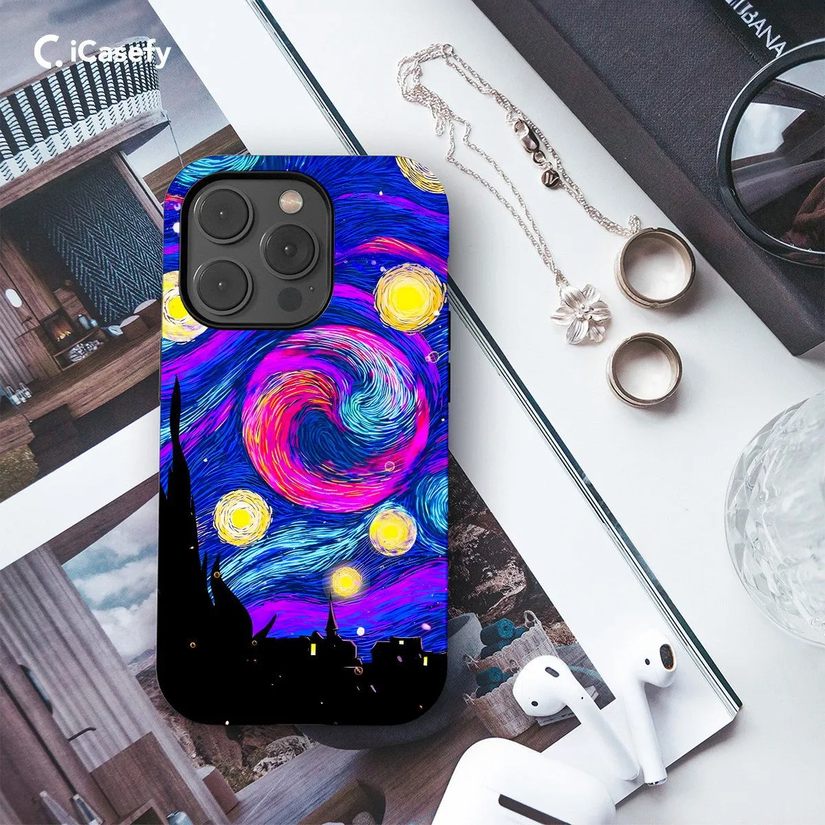Step into the enchanting beauty of London's night sky with a touch of Vincent van Gogh's iconic style with this captivating phone case. Featuring a fusion of London's cityscape under a starry night, reminiscent of van Gogh's famous "Starry Night" painting, this case combines the allure of two timeless classics. Carry a piece of artistic history and the charm of London with you wherever you go, and let your device become a canvas for celestial and urban elegance.