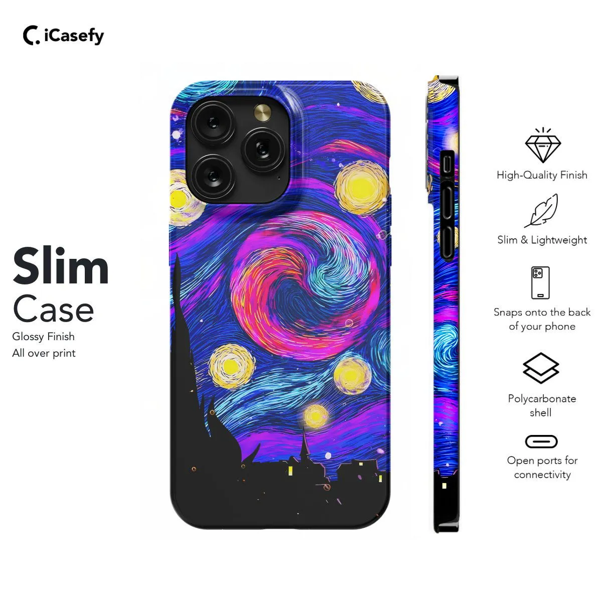 Step into the enchanting beauty of London's night sky with a touch of Vincent van Gogh's iconic style with this captivating phone case. Featuring a fusion of London's cityscape under a starry night, reminiscent of van Gogh's famous "Starry Night" painting, this case combines the allure of two timeless classics. Carry a piece of artistic history and the charm of London with you wherever you go, and let your device become a canvas for celestial and urban elegance.