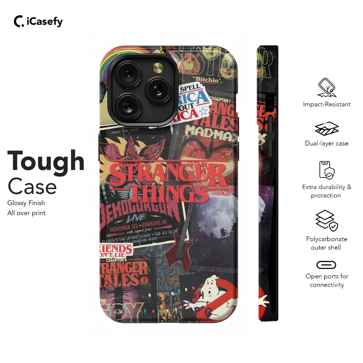Elevate your phone's protection with our Stranger Things Phone Case, available for iPhone, Samsung, and Pixel devices. Immerse yourself in the enigmatic world of Hawkins with this sleek case emblazoned with iconic imagery from the beloved series. Its durable construction safeguards your phone from daily wear and tear, while its vibrant design adds a touch of fandom to your everyday carry. Whether you're a fan of Eleven, Mike, or the Demogorgon, this phone case is a must-have accessory that will protect your device while celebrating your love for the show.