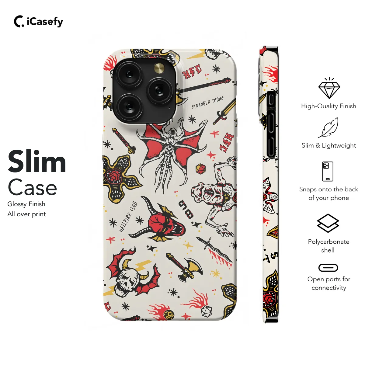 Protect your device with an eerie elegance inspired by the beloved Stranger Things series. This sleek phone case adorns your iPhone, Samsung, Pixel, or other compatible device with captivating artwork featuring your favorite characters and iconic symbols from the Upside Down. Its durable construction ensures your phone remains unscathed from the perils of the Demogorgon and the enigmatic realm beyond. Embrace the supernatural with this exclusive case, a must-have for any Stranger Things enthusiast.