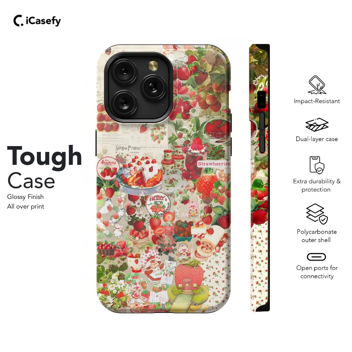 Celebrate the vibrant beauty of spring with this delightful phone case featuring a collage of strawberries amidst blooming flowers. This accessory captures the essence of the season's freshness and abundance, evoking feelings of joy and renewal. Carry a touch of springtime charm with you wherever you go, letting your device become a symbol of the natural beauty and vitality of the season with this delightful accessory.