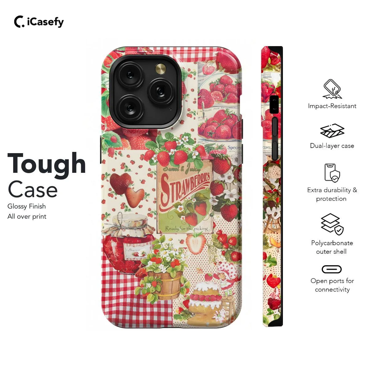 Capture the essence of sweetness with a strawberry collage Piknik phone case. Featuring vibrant strawberries arranged in a playful and artistic collage, this accessory celebrates the joy and freshness of the beloved fruit. Carry a touch of summery delight with you wherever you go, letting your device become a vibrant reflection of nature's bounty with this delightful and charming accessory.
