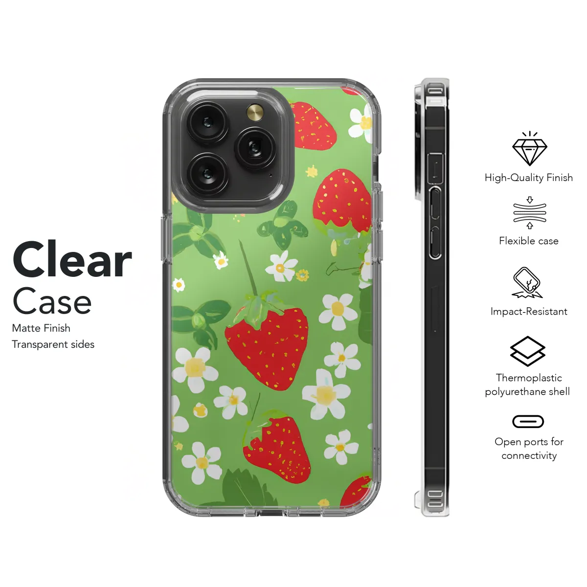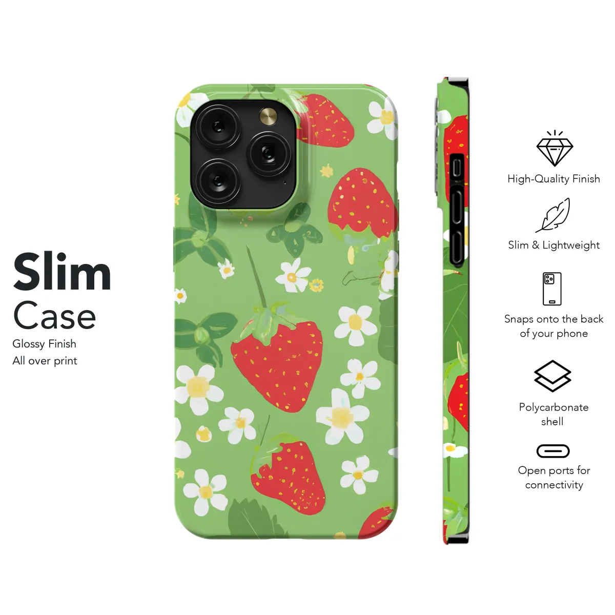 Unleash your sweet style with our Strawberry Phone Case! Perfectly designed for iPhones, Samsungs, and Pixels, this case is a juicy treat for your tech accessory game. Its vibrant strawberry print radiates summer vibes, while its sleek silhouette keeps your phone protected in style. Say goodbye to dull cases and embrace the fruity freshness that makes every glance a delight.