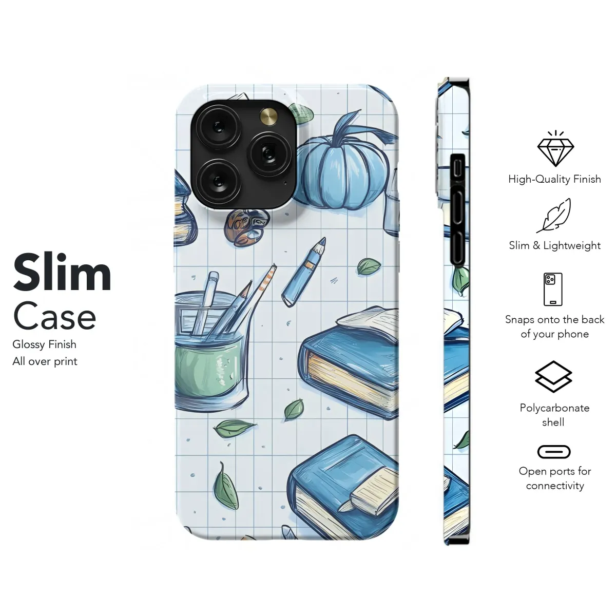 Adorn your device with this charming "Back to School" inspired design! A delightful pattern featuring hand-drawn style books, pencils, apples, and leaves scattered across a classic graph paper background evokes a sense of nostalgia and academic charm. The cool blue tones create a calming and sophisticated aesthetic, perfect for students, teachers, librarians, or anyone who appreciates the beauty of learning. This unique design offers a stylish way to personalize your tech while subtly showcasing your passion for knowledge and creativity. Great gift idea for book lovers, educators, and students. Consider this unique tech accessory for an artful statement. Perfect for customizing your favorite devices with a bookish flair! It also ideal as a stationery-themed pattern and education-inspired graphic. This seamless pattern will bring a touch of scholarly elegance to your mobile gadgets.