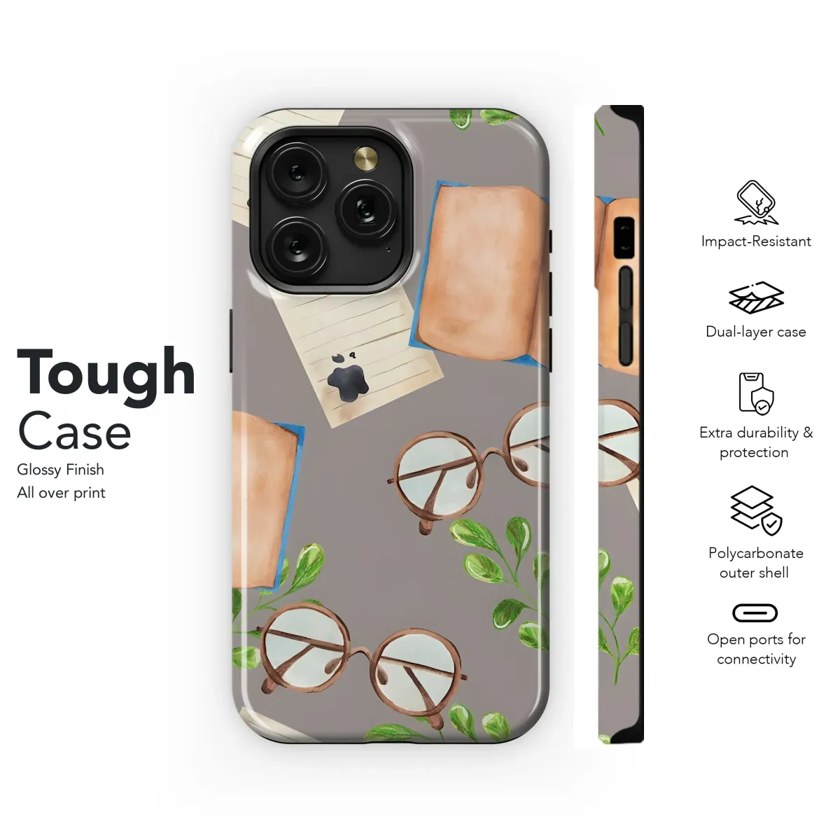 Add a touch of scholarly charm to your everyday tech with this delightful literary design! Featuring a watercolor-inspired pattern of open books, vintage spectacles, lined paper with whimsical ink blots, and sprigs of verdant greenery, this design evokes a sense of cozy intellectualism and artistic flair. Perfect for bookworms, writers, students, and anyone who appreciates a touch of vintage aesthetic, this unique pattern brings a sense of calm and creativity to your digital life. The neutral background ensures that the design is versatile and complements any style. Ideal for those who love library vibes, study aesthetics, or simply want to showcase their love of reading and learning. Elevate your device with this unique piece of art, perfect for adding a touch of personality and sophistication. This accessory is not just a cover; it's a statement. Get yours today and express your unique passion for literature and style.