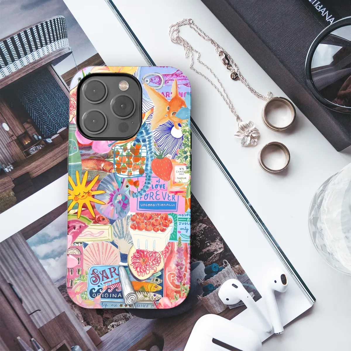Showcase the vibrancy and artistry of summer with our Summertime Collage Art Phone Case. This case is a canvas for a captivating collage, featuring a medley of elements that evoke the warmth and joy of the season. From the lush greenery to the golden hues of sunset, each detail contributes to a symphony of colors. The protective design safeguards your phone, while the unique artwork adds a touch of personalized style that will make you stand out from the crowd. Embrace the spirit of summer with this vibrant and artful phone case.