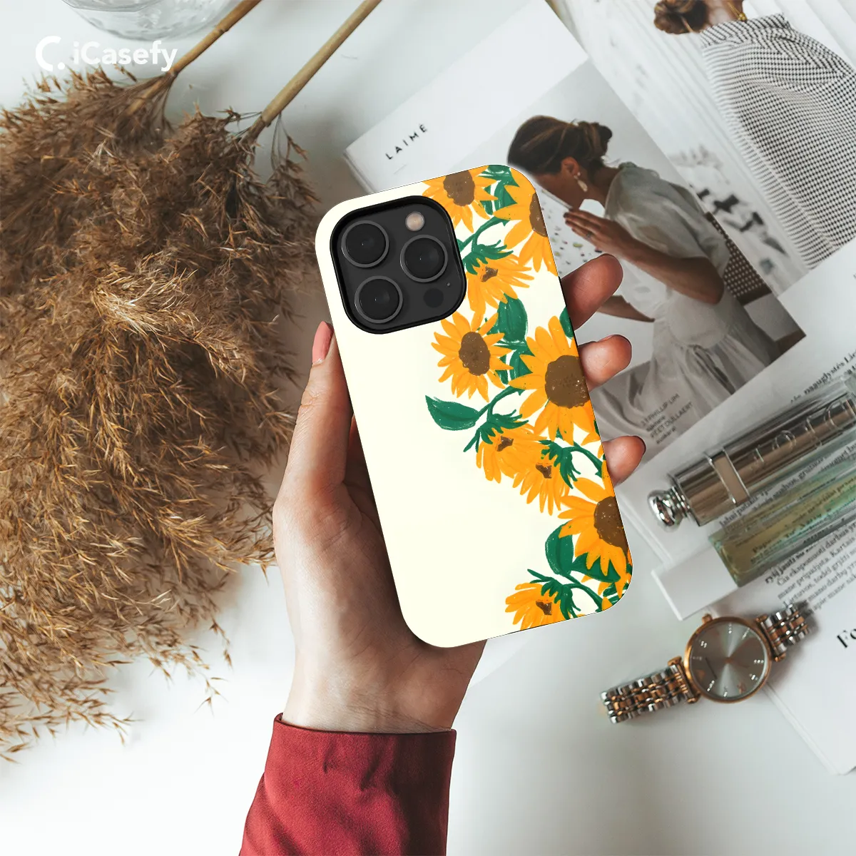 Adorn your smartphone with the vibrant beauty of sunflowers with our stunning phone case. Its sleek design seamlessly contours your device, providing both style and protection. Crafted from durable materials, this case safeguards your phone from scratches, bumps, and everyday wear and tear. The captivating sunflower artwork adds a touch of nature's charm to your tech accessory, making it a perfect choice for nature lovers and fashion-forward individuals.