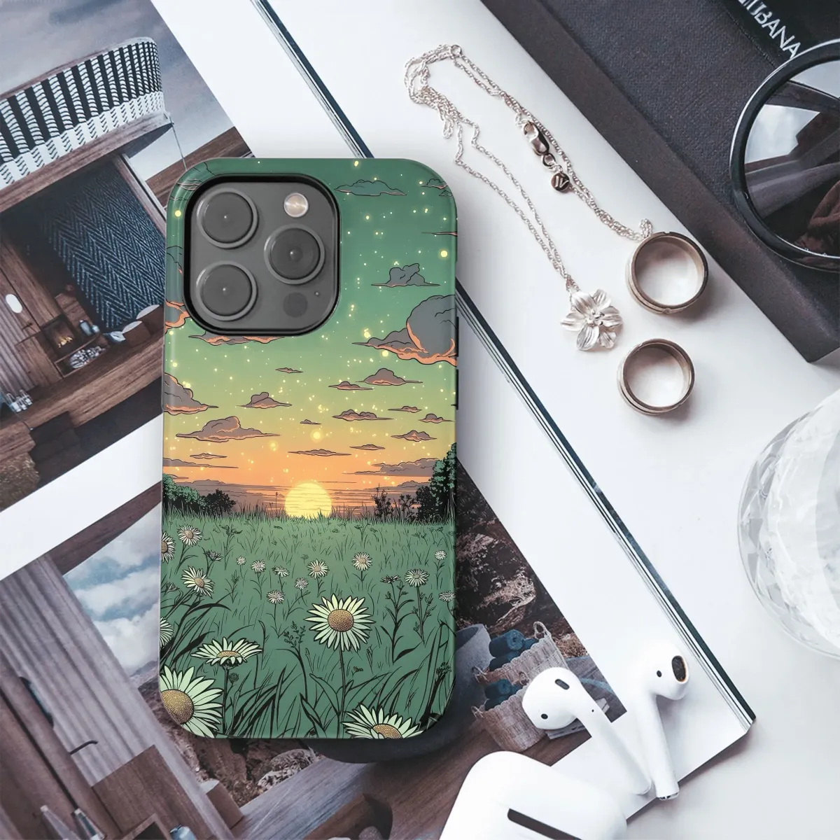 Escape into the serene beauty of nature with our Sunset Daisies Field phone case. This captivating design features a vibrant meadow awash in golden hour hues, where delicate daisies dance in the gentle breeze. The intricate details and rich colors will transport you to a tranquil haven, reminding you of the simple joys of life.