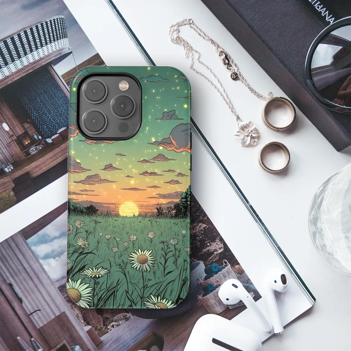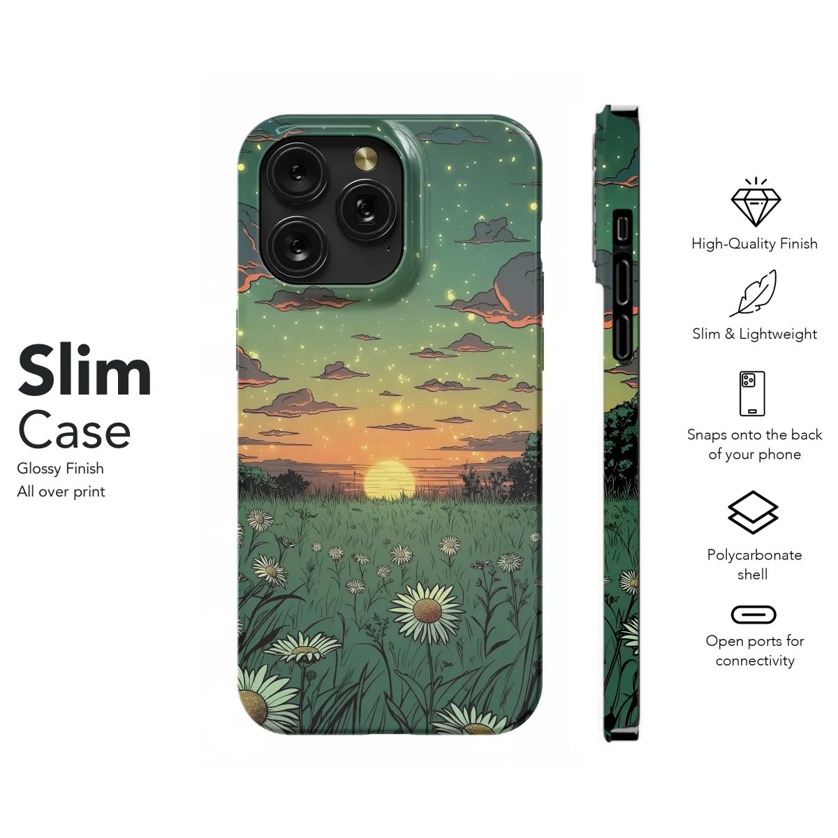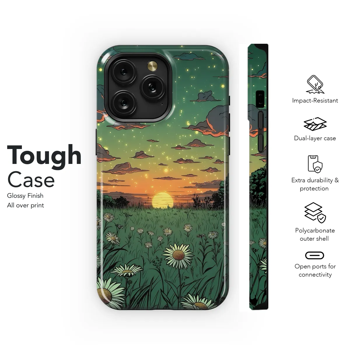 Escape into the serene beauty of the Sunset Meadow with this ethereal phone case. The mesmerizing dreamscape, printed on a durable and protective cover, transports you to a tranquil oasis where hues of orange, pink, and purple blend seamlessly. Each stroke captures the essence of a breathtaking sunset, inviting you to lose yourself in its enchanting allure. Whether you're capturing moments or immersing yourself in the digital world, this case will elevate your phone experience with its captivating design and unwavering protection.