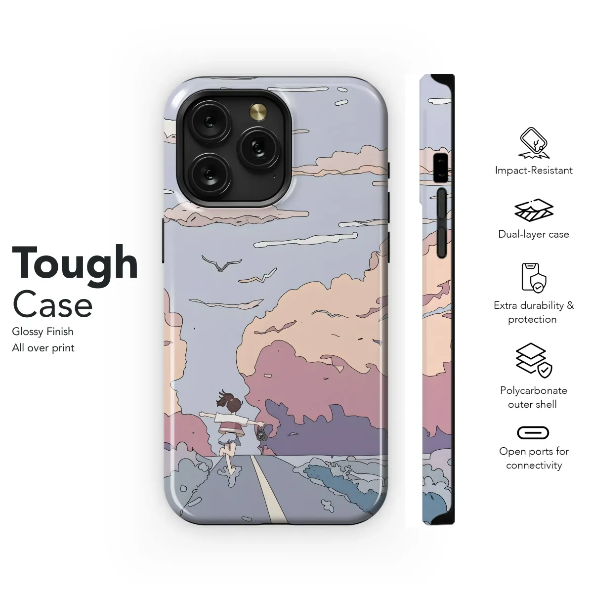 Embrace the whimsical charm of this dreamy landscape design, perfect for adding a touch of effortless style to your personal device. Featuring a girl joyfully running towards a breathtaking sunset, this artwork evokes a sense of freedom and wanderlust. The soft pastel palette and simplistic linework create a calming and aesthetically pleasing aesthetic, ideal for those who appreciate minimalist art and soft colors. This unique design is sure to spark conversations and compliments wherever you go, making it a stylish and memorable accessory. The high-quality print ensures vibrant colors and long-lasting durability, resisting scratches and fading. Transform your everyday essential into a personal canvas of artistic expression, showcasing your individual style with this enchanting piece. This design is meticulously crafted for optimal image quality, promising a vibrant and long-lasting impression on your chosen surface. Perfect as a gift or a self-treat, this design infuses everyday life with artistic beauty and understated elegance. Secure yours today and bring a touch of magical realism into your world. #pastelart #sunset #minimalistart #whimsical #girlpower #dreamy #aesthetic #cute #girly #artistic #unique #personalized #gift #beautiful #landscape #freedom #wanderlust