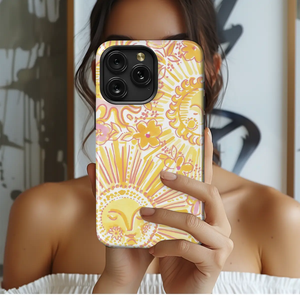 Lose yourself in a picturesque meadow with our Sunshine Floral Dream phone case. Its intricate floral design, featuring vibrant hues and blooming blossoms, will transport you to a realm of serenity and joy. Each petal is meticulously crafted to evoke the essence of a sunlit garden, bringing a touch of nature to your fingertips. Adorned with your choice of compatible device, this case not only protects but also complements your style, making it a delightful accessory for any occasion.