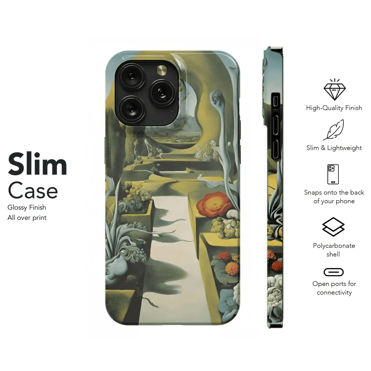 Escape into a surreal garden realm with this ethereal phone case. The vibrant colors and intricate design will transform your device into an artistic masterpiece. The durable construction provides ultimate protection for your precious tech, while the slim profile ensures a perfect fit. Let your imagination wander amidst the enchanted paths and lush foliage of this captivating case.