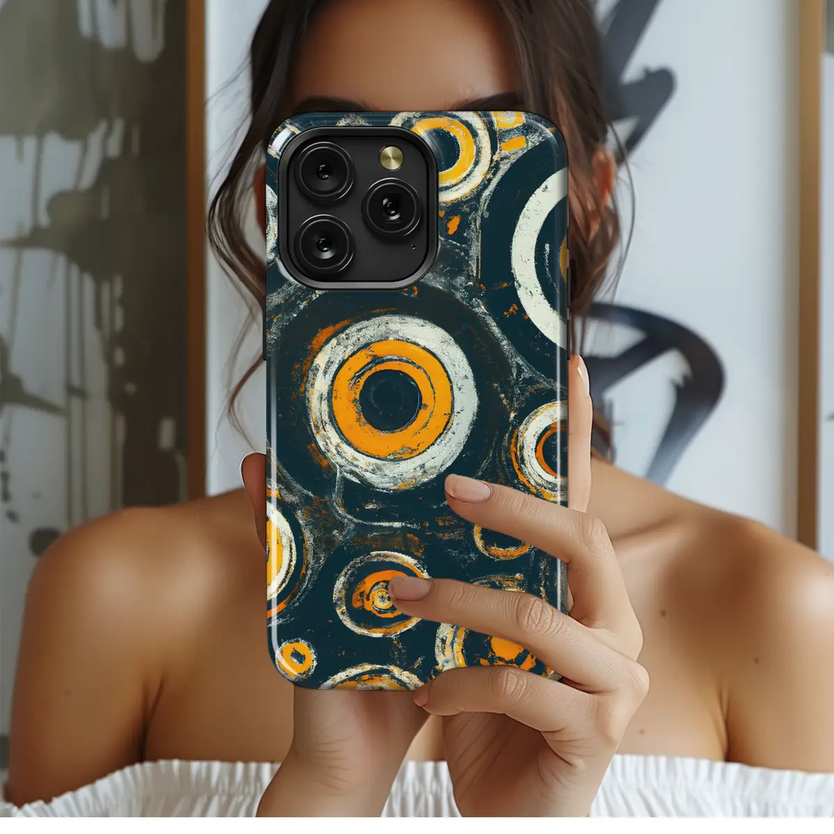 Embrace a vibrant splash of African art on your phone with this exquisite Swahili Circles Shapes phone case. Geometric patterns in shades of yellow, orange, and white dance across the case, creating a mesmerizing spectacle. Whether you grace an iPhone, Samsung, or Pixel, this case transforms your device into a canvas of cultural charm.