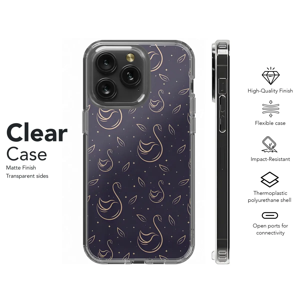 Adorn your tech with the elegant allure of our Swan Lake design! This sophisticated pattern features gracefully stylized swans amidst scattered leaves and twinkling stars, all rendered in a delicate cream hue against a rich, deep navy background. Perfect for adding a touch of dreamy whimsy and refined style to your everyday carry. Ideal for those who appreciate minimalist designs with a touch of magic. It's more than just a design; it's a statement of sophistication and serenity. Elevate your accessory game with this beautiful pattern. Order now and bring a touch of classic beauty to your digital world! Perfect gift for swan lovers, nature enthusiasts, and anyone who adores unique, artistic designs. This swan pattern is available now!