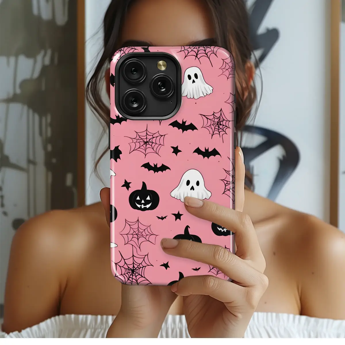 Unleash your inner spooky-sweet spirit with a design that whispers 'Halloween' all year long. Imagine a bubblegum pink twilight sky where friendly little ghosts drift playfully among the silhouettes of shadowy bats and mischievous jack-o'-lanterns, their grins carved in onyx black. Delicate spiderwebs are spun like intricate lace, adding a touch of gothic elegance to this enchanting, kawaii-inspired scene. This isn't just an accessory; it's a personality statement for your most essential piece of tech, a wearable piece of art that perfectly captures the pastel goth aesthetic. It's the ultimate blend of creepy and cute, designed for the soul who finds beauty in the shadows and joy in the sweet side of spooky. Let this charming pattern be the perfect companion for your device, safeguarding your connection to the world while showcasing your unique, enchantingly eerie style. Whether you're a soft goth at heart or a lover of all things pink and macabre, this design is the perfect gift for the spooky queen in your life or a bewitching treat to claim for yourself. Carry a little piece of midnight magic in your pocket, every single day.