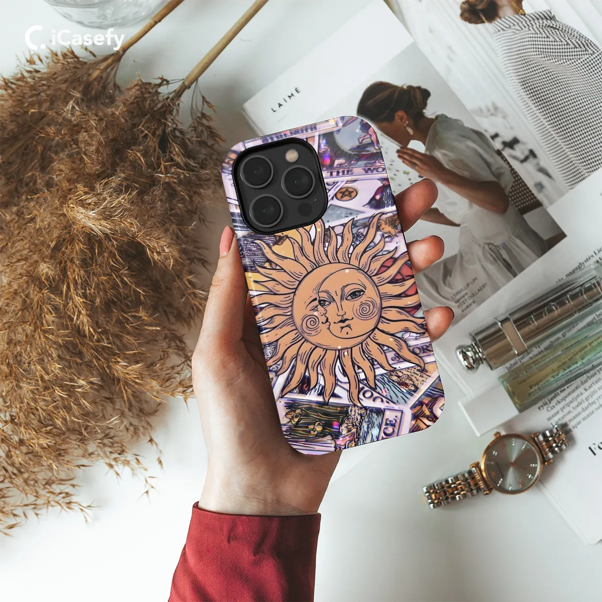 Dive into a realm of cosmic allure with our enchanting Tarot Moon and Sun Phone Case. This celestial accessory adorns your device with a vibrant tapestry of tarot imagery, featuring the enigmatic Moon and radiant Sun. Protect your phone in mystical style while honoring the ancient wisdom of the cosmos. Crafted from durable materials, this case ensures your device remains safeguarded from everyday adventures. Awaken your inner mystic and embrace the celestial vibes with this captivating phone case.