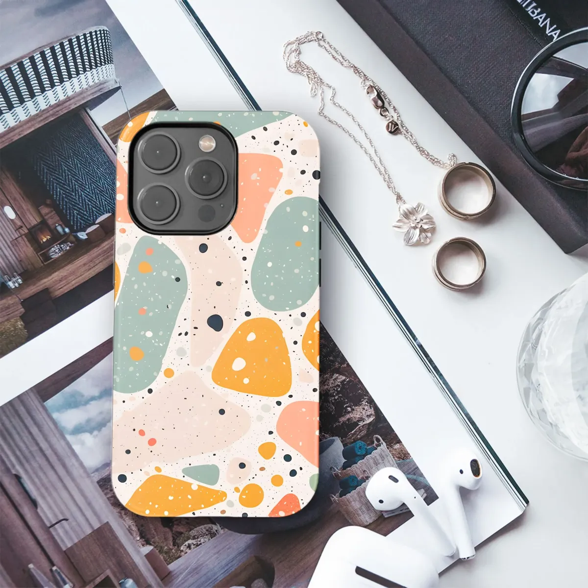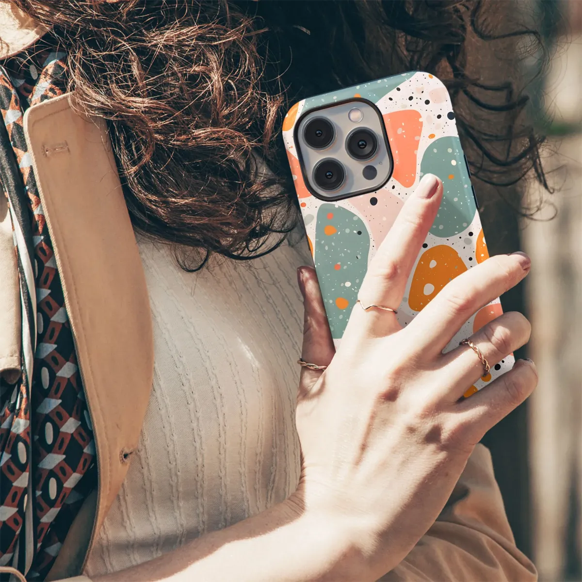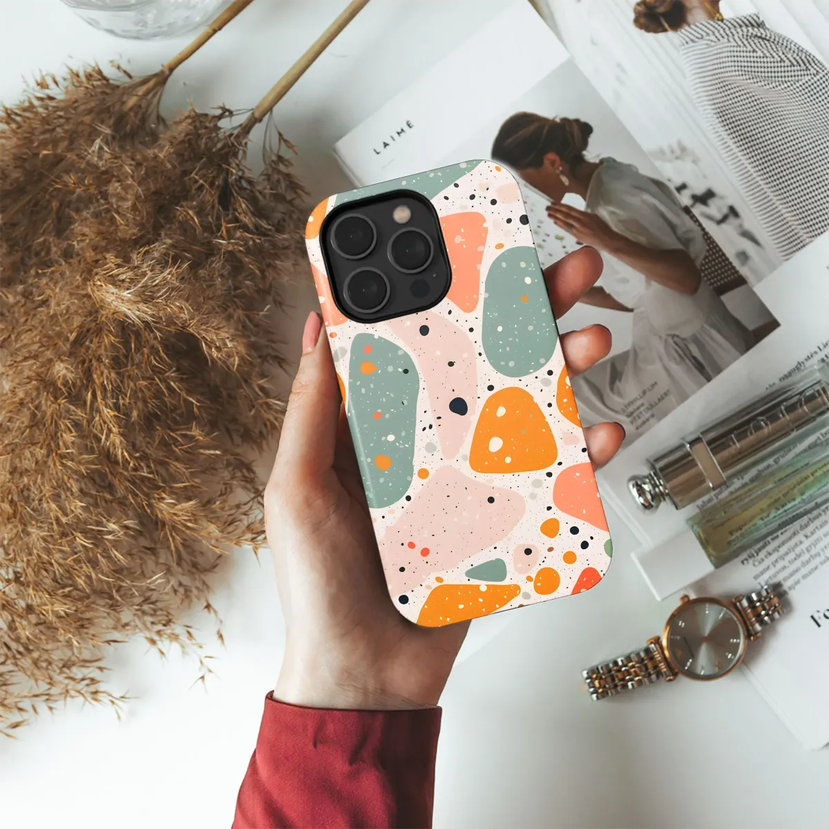 Elevate your everyday with this retro-inspired terrazzo design! Bursting with playful shapes in a delightful pastel palette of coral, sage green, pale pink, and sunny yellow, this vibrant pattern offers a touch of mid-century modern flair. The speckled details add depth and texture, creating a visually captivating and stylish accent. Perfect for adding a pop of color and personality to your mobile device, this trendy abstract art is both eye-catching and timeless. It makes a fantastic gift for anyone who appreciates unique patterns, artistic creations, and chic accessories. Get yours today and add a dose of cheerful, modern style to your tech! Keywords: Terrazzo pattern, abstract design, pastel colors, retro style, mid-century modern, trendy, unique, speckled, art deco, geometric, stylish, mobile accessory, gift idea, colourful, playful, contemporary design, minimalist, modern art, aesthetic, vibrant, artistic creation.