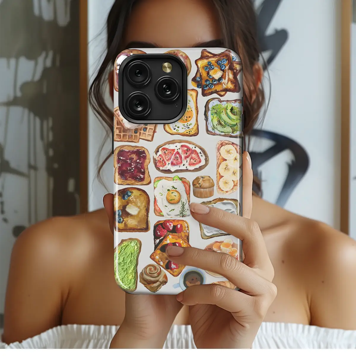 Wrap your daily companion in the delicious comfort of a slow weekend morning with this charming and artistic design. Imagine a beautiful spread of your favorite brunch delights, all captured in a rich, hand-painted style that makes you want to reach out and grab a bite! From the golden-brown waffles piled with whipped cream and berries to the trendy avocado toast, the sunny-side-up egg sprinkled with chives, and the sweet, jammy bagel, every detail is crafted with a foodie’s love. This isn’t just a pattern; it’s a feeling—a cozy café aesthetic that celebrates the joy of a good meal. Let this whimsical illustration be your stylish shield, a tribute to comforting foods and happy moments. It's the perfect foodie gift for your brunch-loving best friend, a cute cottagecore accessory for your kitchen adventures, or a personal treat to make your most essential tech a true conversation starter. Carry a piece of hand-painted joy with you everywhere you go, a delicious reminder of life's simple, happy pleasures and the perfect accessory for anyone who lives for that weekend brunch vibe.