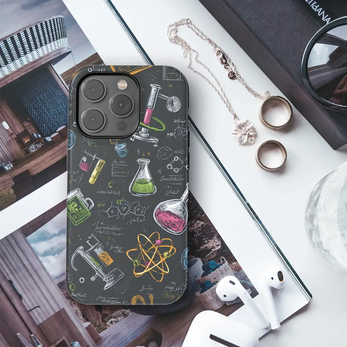 Unleash your inner scientist and carry a spark of genius with you everywhere! This captivating design transforms your most essential tech into a canvas of intellectual curiosity, capturing the chaotic beauty of a brilliant mind at work. Set against a rich, textured chalkboard-black background, a stunning array of hand-sketched scientific marvels comes to life in a flurry of discovery. Imagine vibrant, chalk-like illustrations in pops of electric pink, vivid green, and golden yellow, depicting everything from fizzing beakers and intricate molecular structures to a classic microscope and the iconic spinning atom. Every glance reveals a new detail—a scrawled formula, a complex graph, a celestial body—all seeming to be jotted down in a moment of inspiration. This is more than just daily armor for your device; it's a wearable piece of art that celebrates the wonder of chemistry, biology, and physics. It's the ultimate geek-chic accessory and the perfect, thoughtful gift for the dedicated teacher shaping young minds, the ambitious student burning the midnight oil, or the passionate STEM professional changing the world. Embrace a dark academia aesthetic and let this unique, retro-inspired artwork be your personal statement, a constant reminder of the beautiful logic and endless possibility that science holds. It's an ideal graduation gift, a cool back-to-school essential, or a fantastic surprise for your favorite nerdy intellectual.