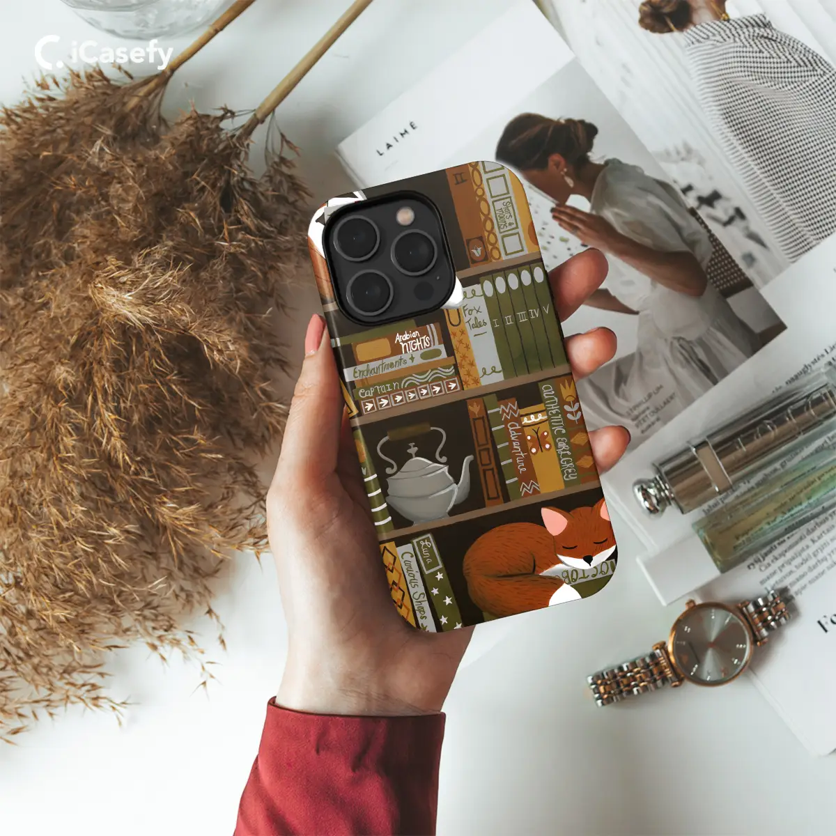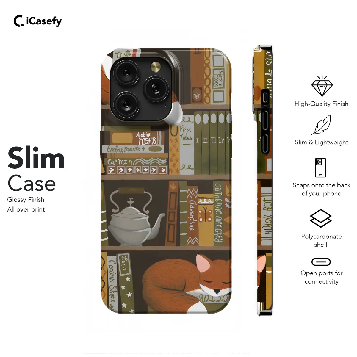 Snuggle up with a good book and your favorite furry friends with our enchanting "Cozy Bookshelf with Foxes" phone case. Embark on a whimsical journey through a literary world filled with cunning foxes peeking out from behind enchanting bookshelves. Its charming design will add a touch of bibliophile flair to your device while protecting it from the perils of daily life.