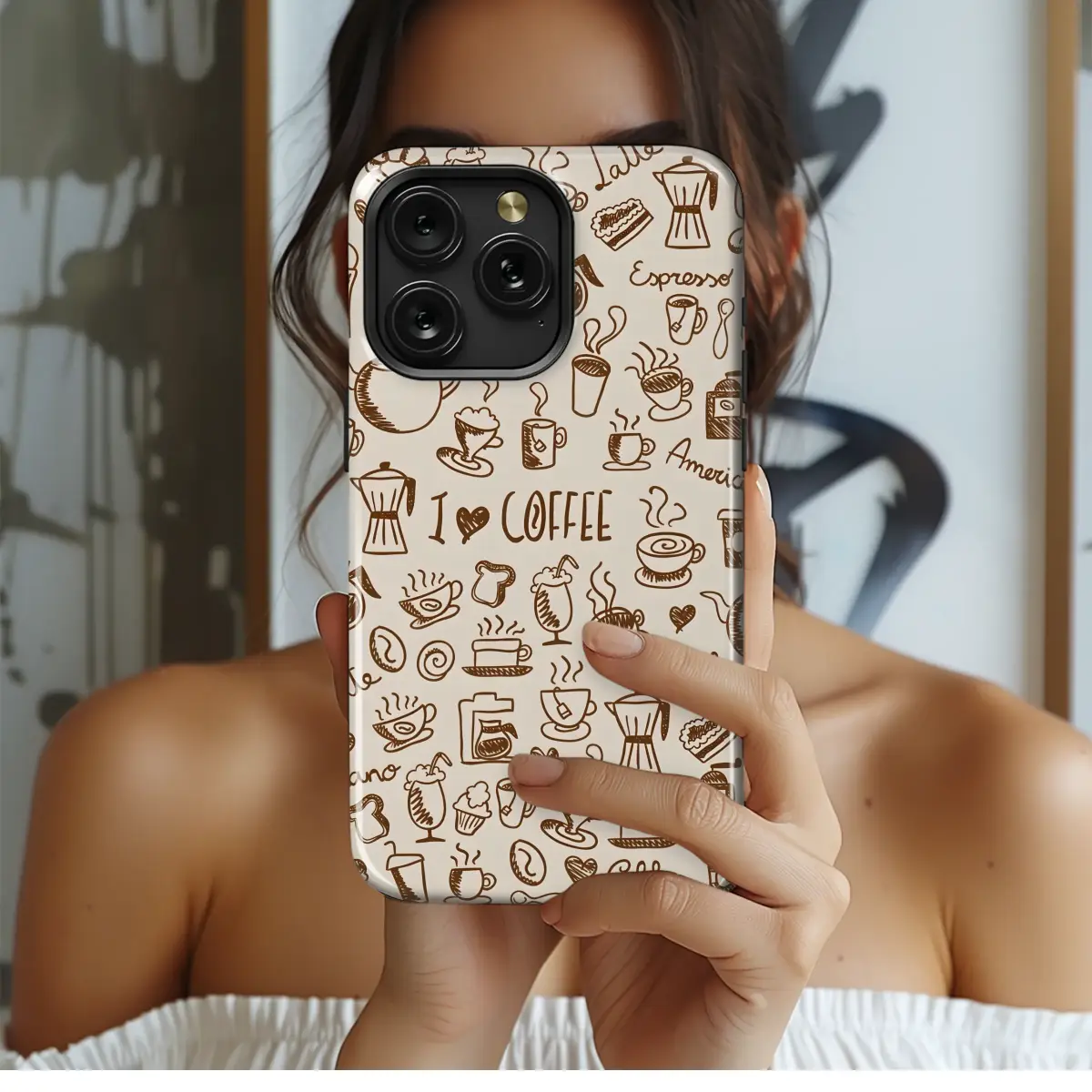 Wrap yourself in the cozy, aromatic embrace of your favorite local café, every single day. This charming design captures that perfect moment: the comforting steam rising from a fresh brew, the promise of a flaky croissant, and the bustling energy of a place that feels like home. Each hand-sketched doodle, from classic moka pots and espresso makers to whimsical latte art and little hearts, tells a story of morning rituals and peaceful afternoon breaks. The warm, neutral palette of rich, earthy brown on a creamy beige background evokes a sense of hygge and timeless, rustic style, making it a subtle yet expressive statement. Let this delightful pattern be the perfect armor for your most essential daily companion, a little piece of art that protects your connection to the world while broadcasting your passion. It’s the ultimate gift for the dedicated barista, the studious caffeine enthusiast, the writer fueling their next chapter, or anyone who believes that life truly begins after coffee. Carry your happy place with you and let this wonderful coffee lover accessory add a splash of joy and personality to your everyday hustle.