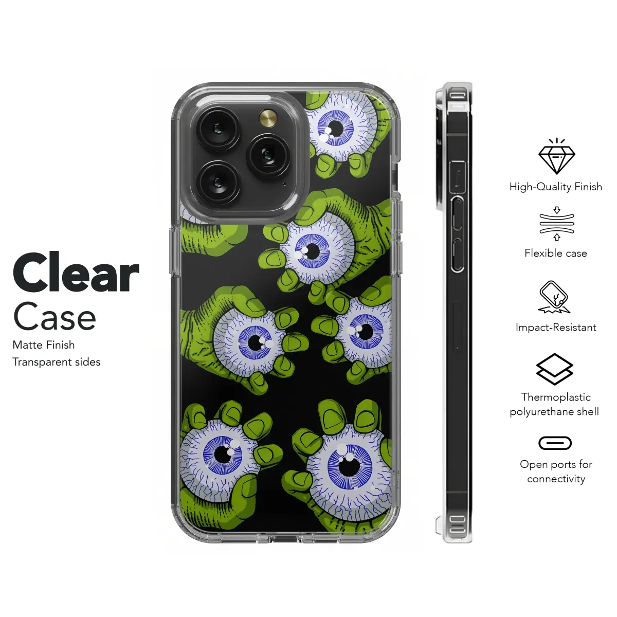 Unleash your wonderfully weird side and give your most essential device a bold new skin that screams originality. This eye-catching piece of protective art is not for the faint of heart, designed for those who walk the line between horror and high-concept pop art. Imagine a hypnotizing pattern of ghoulish, lime-green monster hands, each one detailed with comic book-style shading, emerging from an abyss of pure black. In their grasp, they clutch oversized, bloodshot eyeballs, their electric blue irises staring out with a trippy, all-seeing intensity that's impossible to ignore. This design is a true conversation starter, blending a spooky, macabre aesthetic with a vibrant, psychedelic vibe perfect for anyone into goth, punk, or alt fashion. It's more than just a cover for your tech; it's a wearable piece of lowbrow art that showcases your unique personality and fearless taste. Whether you're a fan of classic monster movies, weirdcore oddities, or just want an accessory that makes a powerful statement, this graphic, surreal masterpiece is the perfect armor to make your everyday gear unforgettable. This makes a killer gift for the horror fan or art lover who has everything, ensuring their style is always being watched.