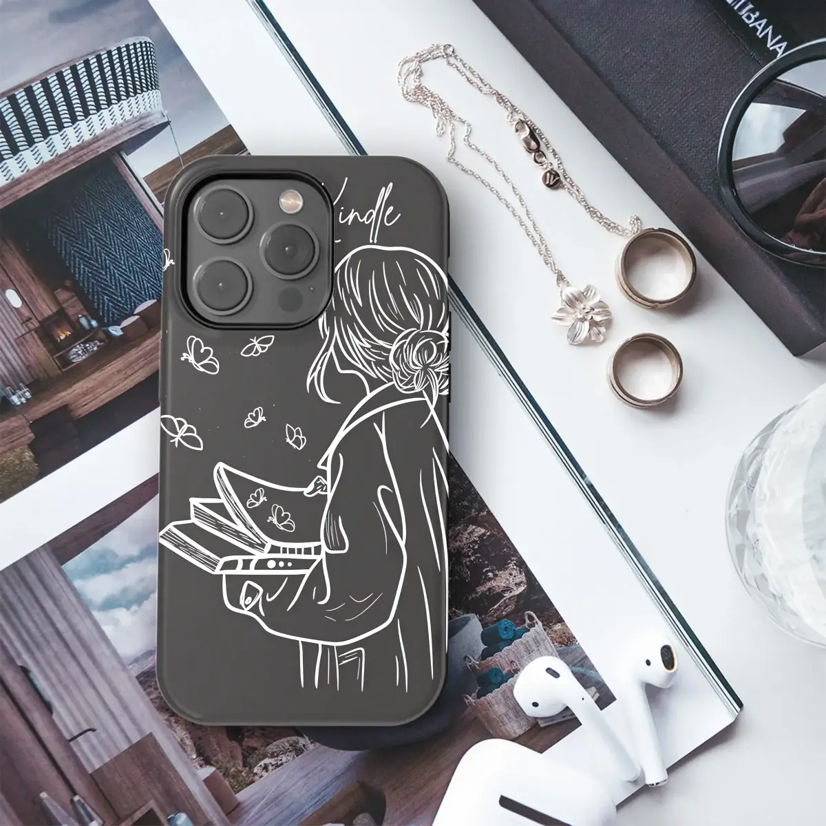 Escape into the quiet magic of a story with this enchanting line art design, a perfect tribute for every devoted reader and book lover. This piece captures that beautiful, private moment when the world fades away and the words on the page come to life. Witness a cozy girl, her hair in a messy bun, completely lost in her Kindle as whimsical butterflies—the very soul of the story—flutter from the screen into the night. It’s a minimalist, dark academia aesthetic that speaks volumes about the power of imagination and the adventures held within our favorite digital libraries. Let this stunning illustration wrap around your most essential daily companion, transforming it from simple tech into a statement of your bookish identity. It’s more than just a beautiful design; it’s a protective charm for your portal to other worlds, a perfect gift for the bookworm in your life, or a personal treasure that celebrates the cozy, magical escape only a good book can provide. Carry your love for reading everywhere you go and let your imagination take flight.