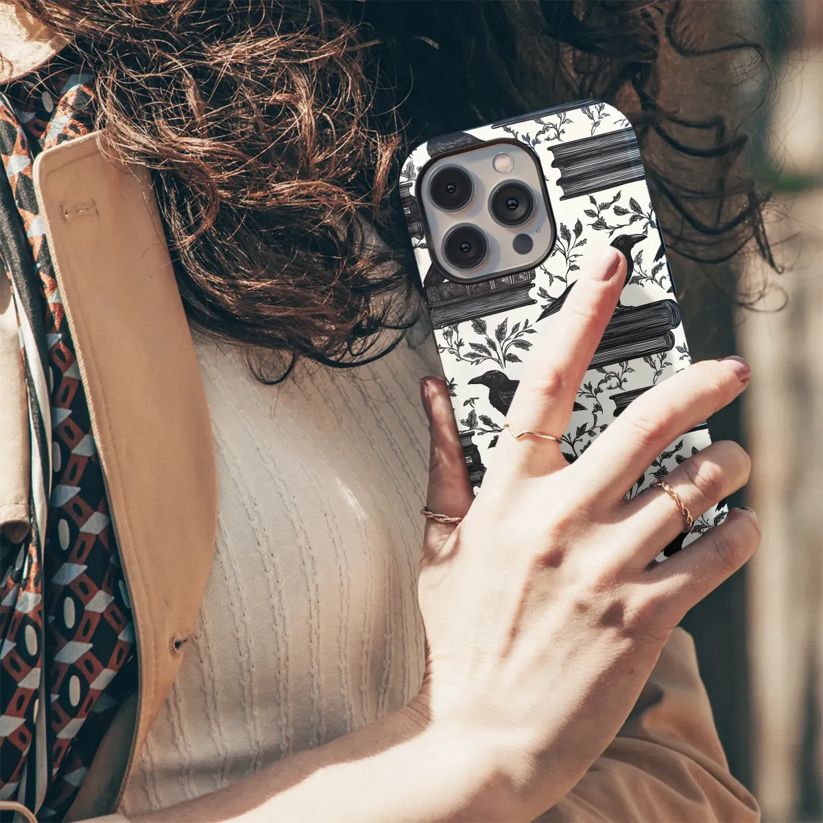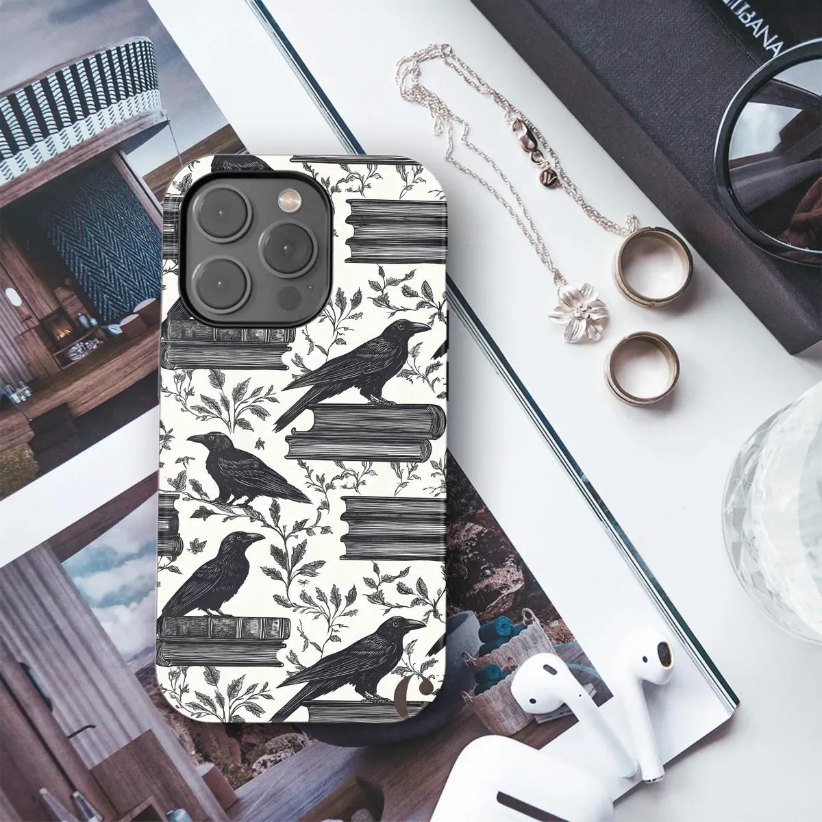 Step into a world whispered from the pages of a forgotten gothic tale with this captivating design. Here, in a secret library where shadows hold ancient secrets, majestic ravens perch atop stacks of well-loved tomes. Each bird, rendered in an exquisitely detailed vintage woodcut style, seems to guard the knowledge within, its inky feathers a stark, beautiful contrast against the delicate, sprawling ivy that weaves between the books. This is more than just a pattern; it’s an ode to the beloved dark academia aesthetic, a perfect companion for the modern scholar, the devoted book lover, and the dreamer of mysterious, moonlit nights. Imagine the quiet rustle of turning pages, the faint scent of old paper, and the watchful, intelligent eyes of these creatures from lore and literature. Let this intricate, monochromatic artwork wrap your most essential daily item in an aura of literary mystery and scholarly elegance. It’s the ideal piece for anyone who finds magic in quiet libraries, romance in Edgar Allan Poe’s poetry, and a kindred spirit in the enigmatic raven. Carry a piece of this enchanted world wherever you go, and let your personal style tell a story of intellect, dark romance, and timeless intrigue.
