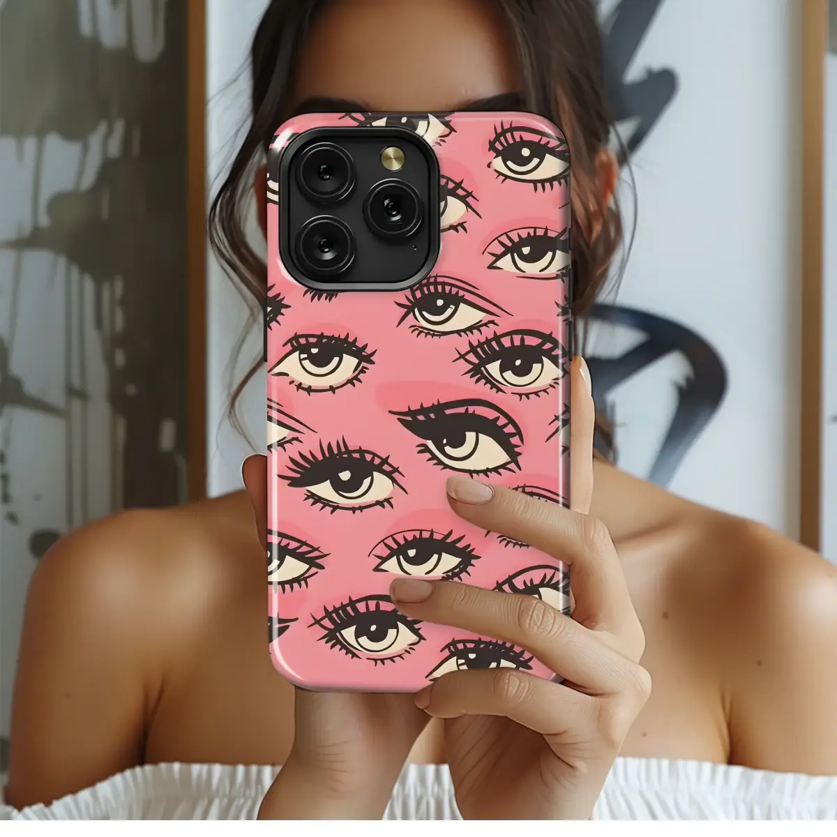 Unleash your bold, playful side and keep all eyes on you with this mesmerizing and quirky illustrated design. Dive into a sea of watchful, hand-drawn eyes, each with its own flirty glance and dramatic, inky lashes, all floating on a dreamy bubblegum pink canvas. This captivating pattern perfectly captures the heart of the Y2K aesthetic, blending 90s nostalgia with a touch of modern, alt-girl magic and a hint of mystical charm. It’s more than just a stylish accessory; it’s a piece of wearable art that gives your most essential tech a personality as unique as your own. Think of it as a protective second skin for your device, a durable armor that guards your handheld world with a playful, all-seeing gaze. This funky, groovy print is guaranteed to turn heads and elevate your mirror selfies, making it the perfect statement piece for any outfit. Whether you're treating yourself or looking for a unique gift for your best friend, this cool, retro design offers a pop of surreal fun and a little dose of evil-eye-inspired protection for your everyday carry. It's the ultimate artsy and trendy companion for the unapologetic trendsetter.