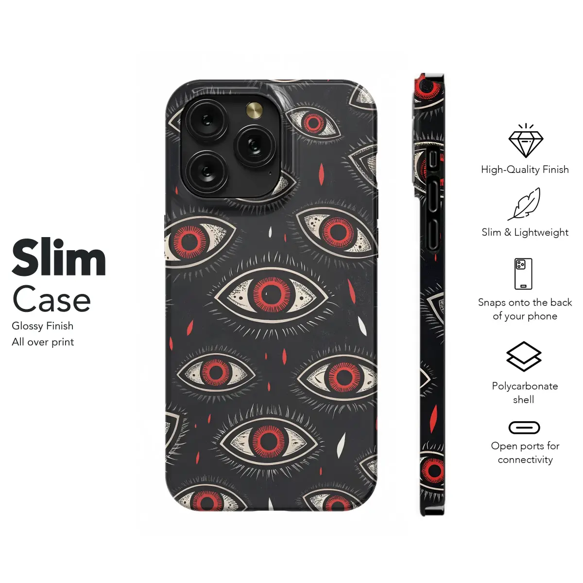 Dare to meet the gaze of the abyss with this captivating design, where countless eyes watch over you from the shadows, creating a protective talisman for your most essential companion. Rendered in a stunning, high-contrast woodblock print style, each all-seeing eye is a universe of its own, featuring a fiery red iris that burns against a stark, bone-white sclera, detailed with delicate linework that gives it a hand-carved feel. These mystic symbols float on a textured, midnight-black canvas, punctuated by crimson and white teardrop accents that enhance the deep, esoteric allure. This is more than just an accessory; it’s a piece of wearable dark art for your tech, a powerful statement for your witchy soul and beautifully alternative spirit. It’s the perfect aesthetic for lovers of all things goth, dark academia, and punk rock, transforming your device's everyday skin into a hypnotic personal totem. Let this spooky, edgy, and profoundly mysterious artwork be your daily armor, a conversation starter that instantly declares your unique style. Whether you’re casting spells or just scrolling, this design makes a perfect unisex gift for the modern mystic who finds beauty in the macabre, wrapping their favorite gadget in a shield of perception and gothic horror-inspired charm.