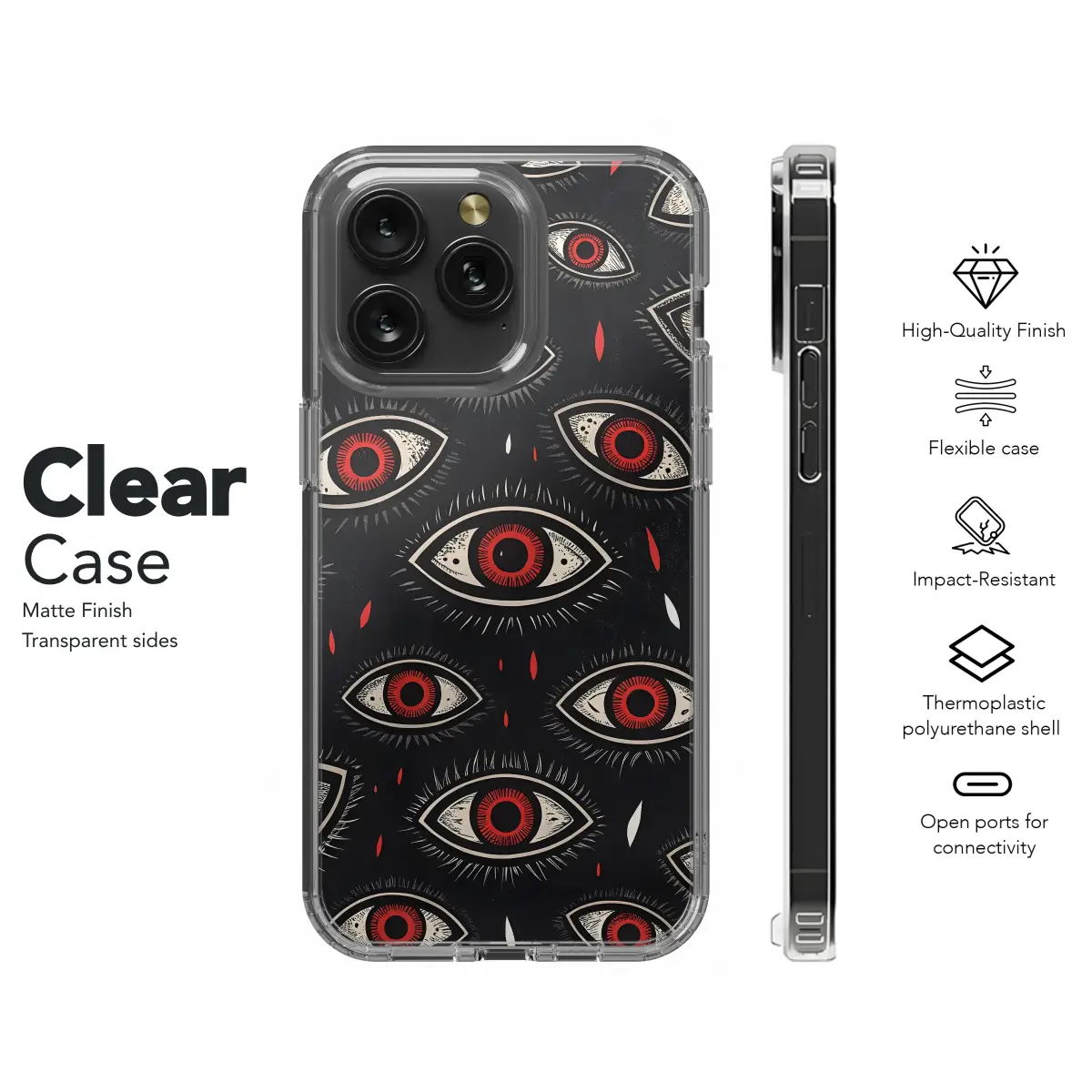 Dare to meet the gaze of the abyss with this captivating design, where countless eyes watch over you from the shadows, creating a protective talisman for your most essential companion. Rendered in a stunning, high-contrast woodblock print style, each all-seeing eye is a universe of its own, featuring a fiery red iris that burns against a stark, bone-white sclera, detailed with delicate linework that gives it a hand-carved feel. These mystic symbols float on a textured, midnight-black canvas, punctuated by crimson and white teardrop accents that enhance the deep, esoteric allure. This is more than just an accessory; it’s a piece of wearable dark art for your tech, a powerful statement for your witchy soul and beautifully alternative spirit. It’s the perfect aesthetic for lovers of all things goth, dark academia, and punk rock, transforming your device's everyday skin into a hypnotic personal totem. Let this spooky, edgy, and profoundly mysterious artwork be your daily armor, a conversation starter that instantly declares your unique style. Whether you’re casting spells or just scrolling, this design makes a perfect unisex gift for the modern mystic who finds beauty in the macabre, wrapping their favorite gadget in a shield of perception and gothic horror-inspired charm.