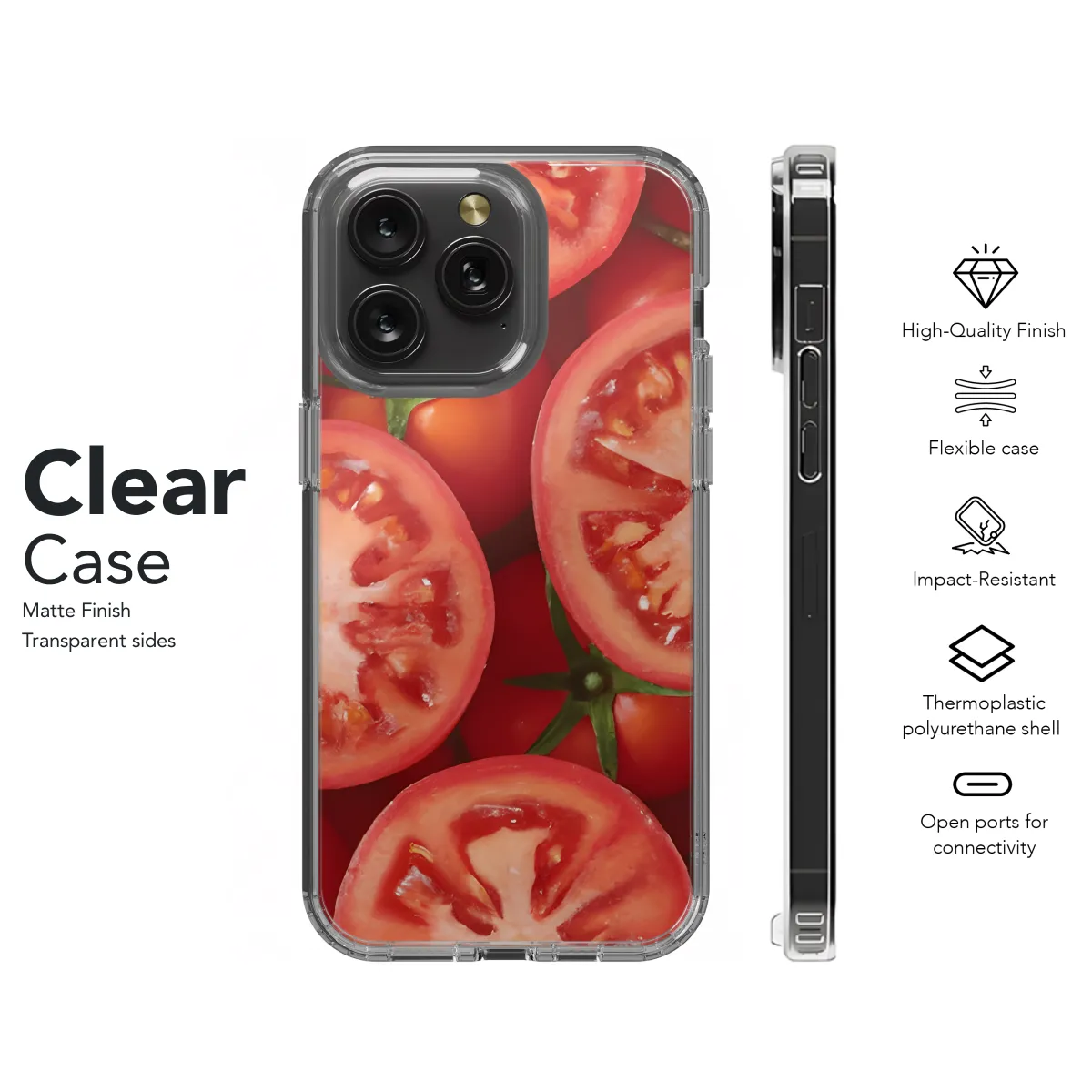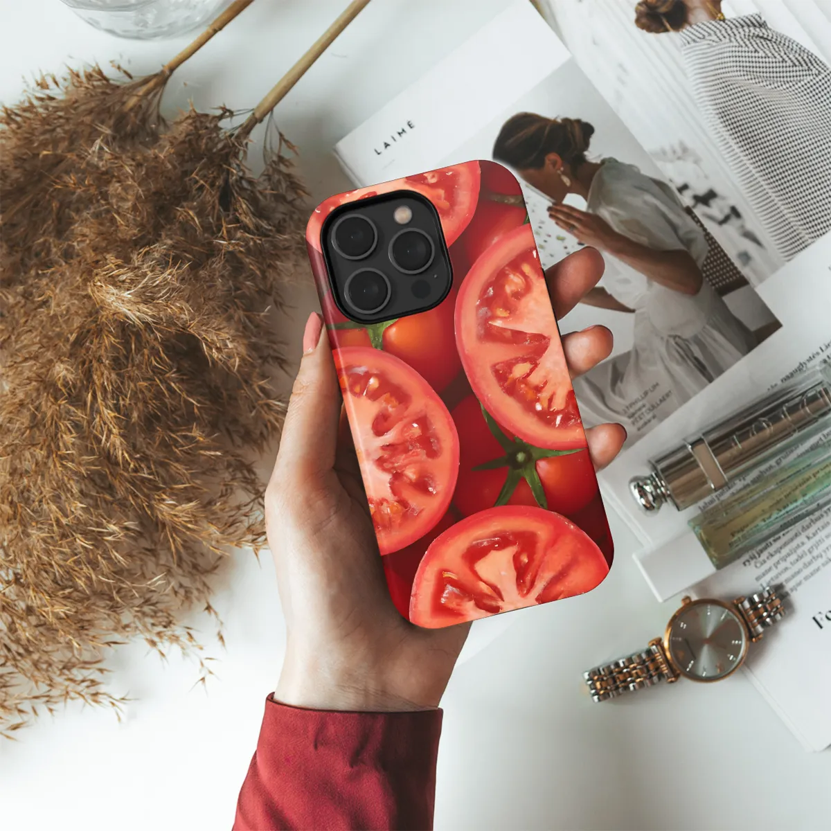 Introducing the delectable Tomato with Slices Phone Case, the perfect accessory to add a touch of summer freshness to your device. Our case is designed to protect your phone from everyday bumps and scratches while showcasing the juicy wonder of a sliced tomato. Made with high-quality materials, our case ensures long-lasting protection and a comfortable grip. Its vibrant print will turn heads and make your phone the envy of all. Whether you're a tomato enthusiast or simply love the vibrant colors of summer, this phone case is a must-have. So, let the tomato slices protect your phone in style!